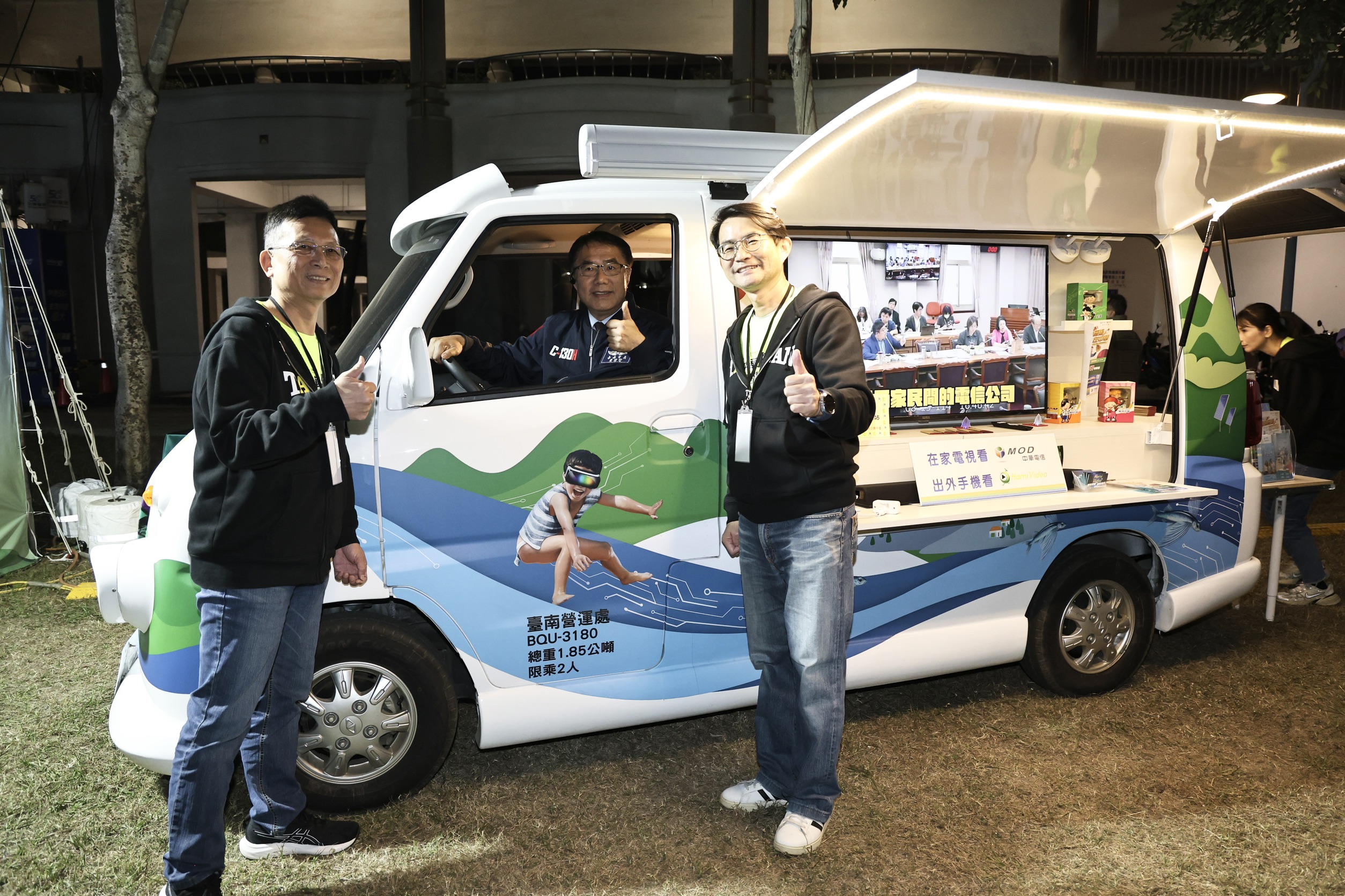 贊助商之一的中華電信亦在活動現場設置攤位,與民眾一起享受跨年的幸福快樂,黃偉哲也特別前往參觀,體驗中華電信的AI拍照,以及含括了「海地星空」的多軌道衛星通訊服務。黃偉哲感謝中華電信,不斷提升通訊技術,並透過多種通訊載具,提供給消費者最棒的通訊體驗。