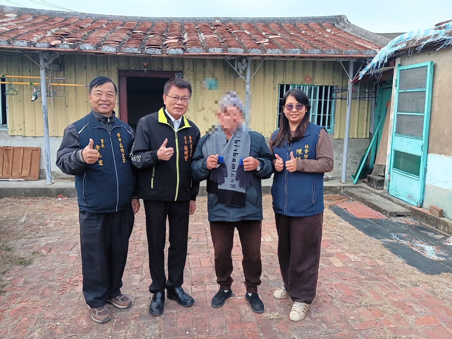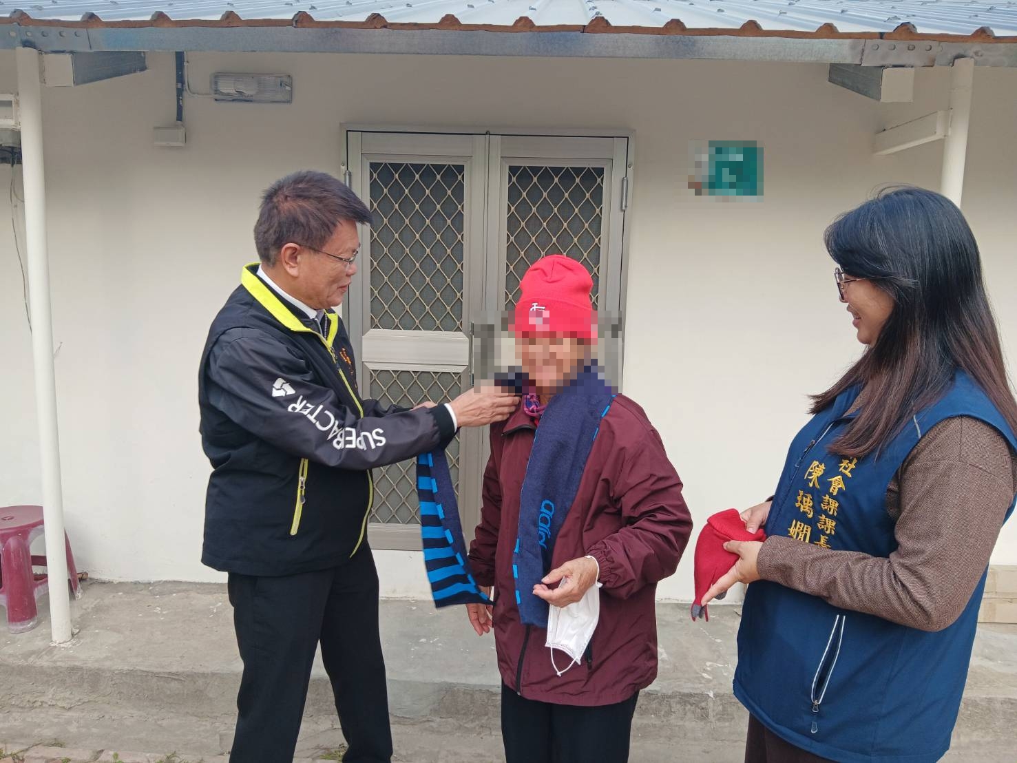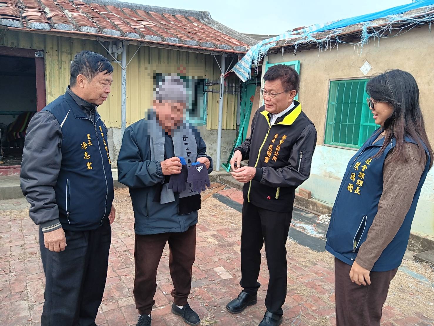 今天的送暖行動由區長張明寶偕同社會課長陳瑀嫺及明宜里長凃志宏,關懷「丹娜絲」颱風受災的獨居長者,發放保暖物資,並關心企業無償修繕屋頂後續居住生活環境與健康狀況,提醒長者留意氣溫變化、適時增添衣物,以降低低溫可能帶來的健康風險,長者們非常感謝市府及企業在風災後的協助,深刻感受來自社會各界的支持與溫暖。