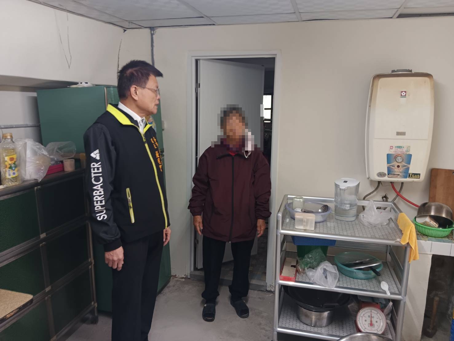 區長張明寶在發放保暖物資的同時,向長者宣導冬季保健觀念,提醒居家應兼顧保暖與通風,務必確認熱水器安裝位置正確,室內應使用強制排氣式熱水器並保持良好通風,避免在密閉或通風不良空間內使用瓦斯熱水器,並定期檢查設備與排氣管狀況,以確保居住安全。
