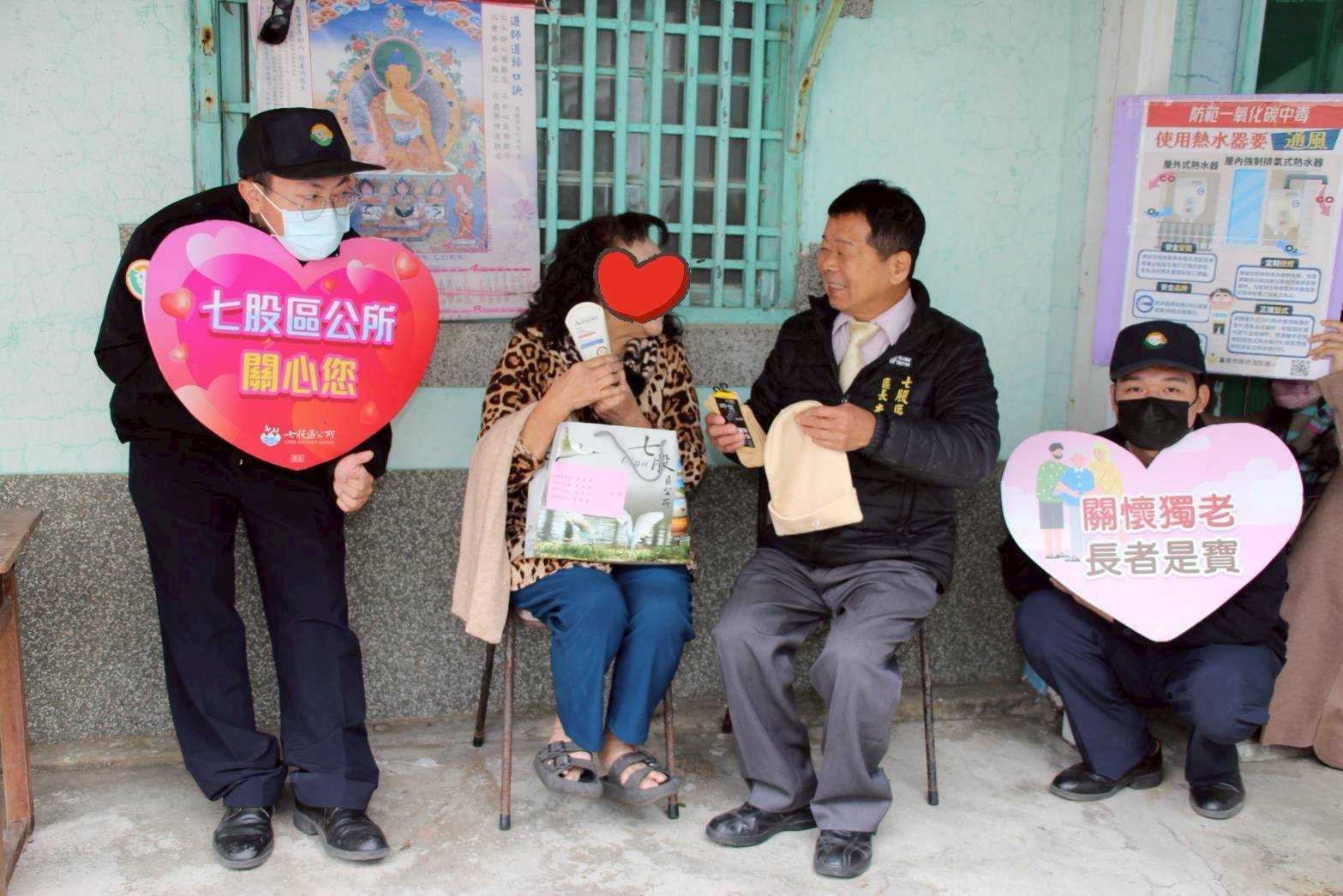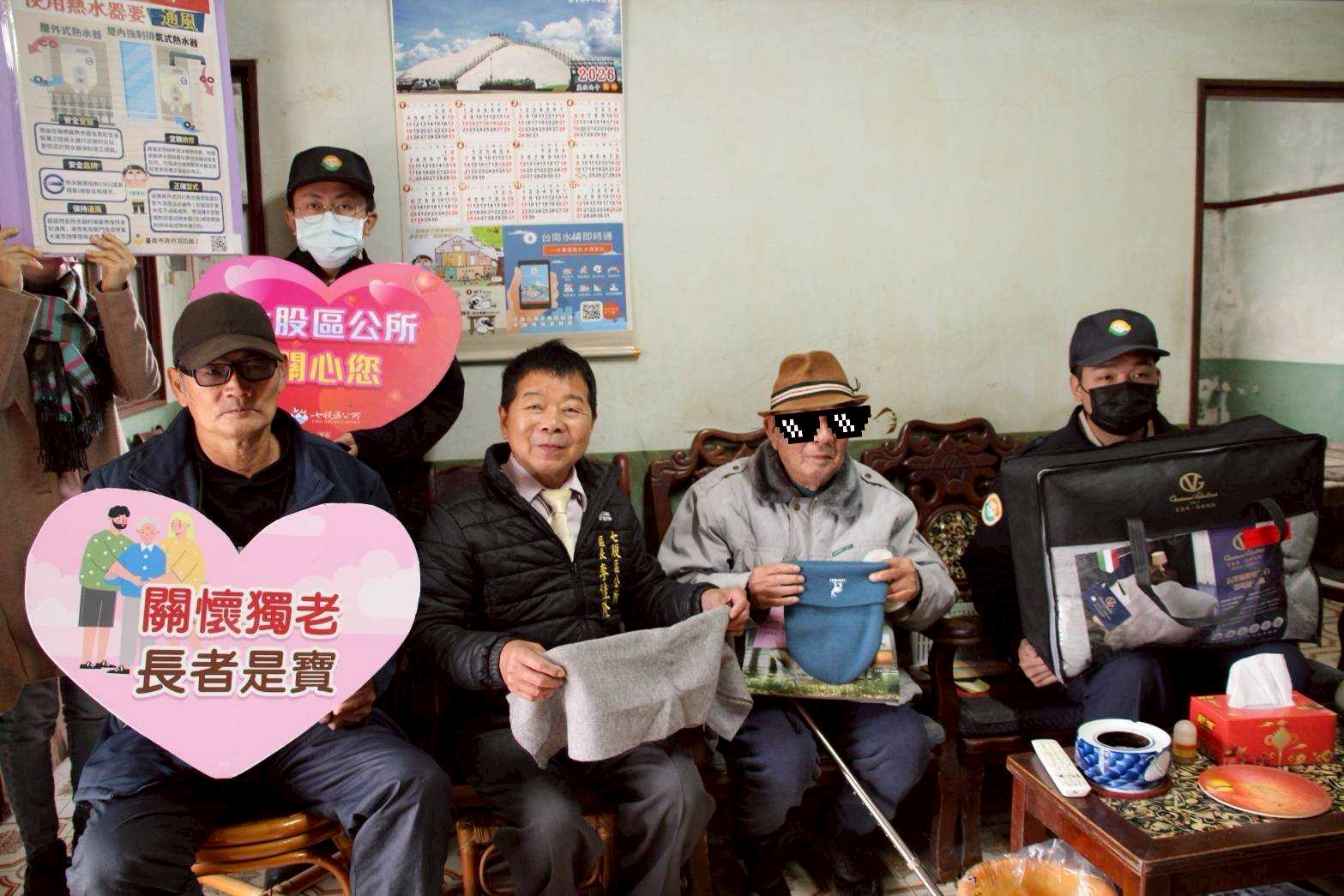 【記者邱仁武/台南報導】時值寒冬低溫來襲之際,七股區公所啟動獨居長者關懷行動,昨天由區長李佳隆偕同公所團隊、各里里長及替代役男,親自前往探視轄內獨居長者,並致贈毛帽、圍巾、長襪、暖暖包、護手霜等禦寒物資,期盼為長輩們送上溫暖關懷與節令祝福。