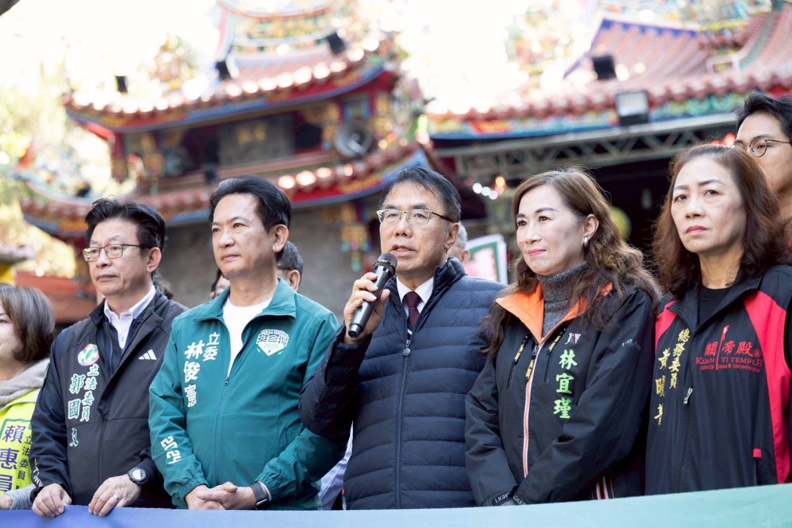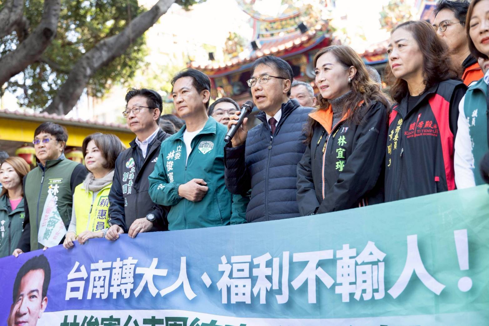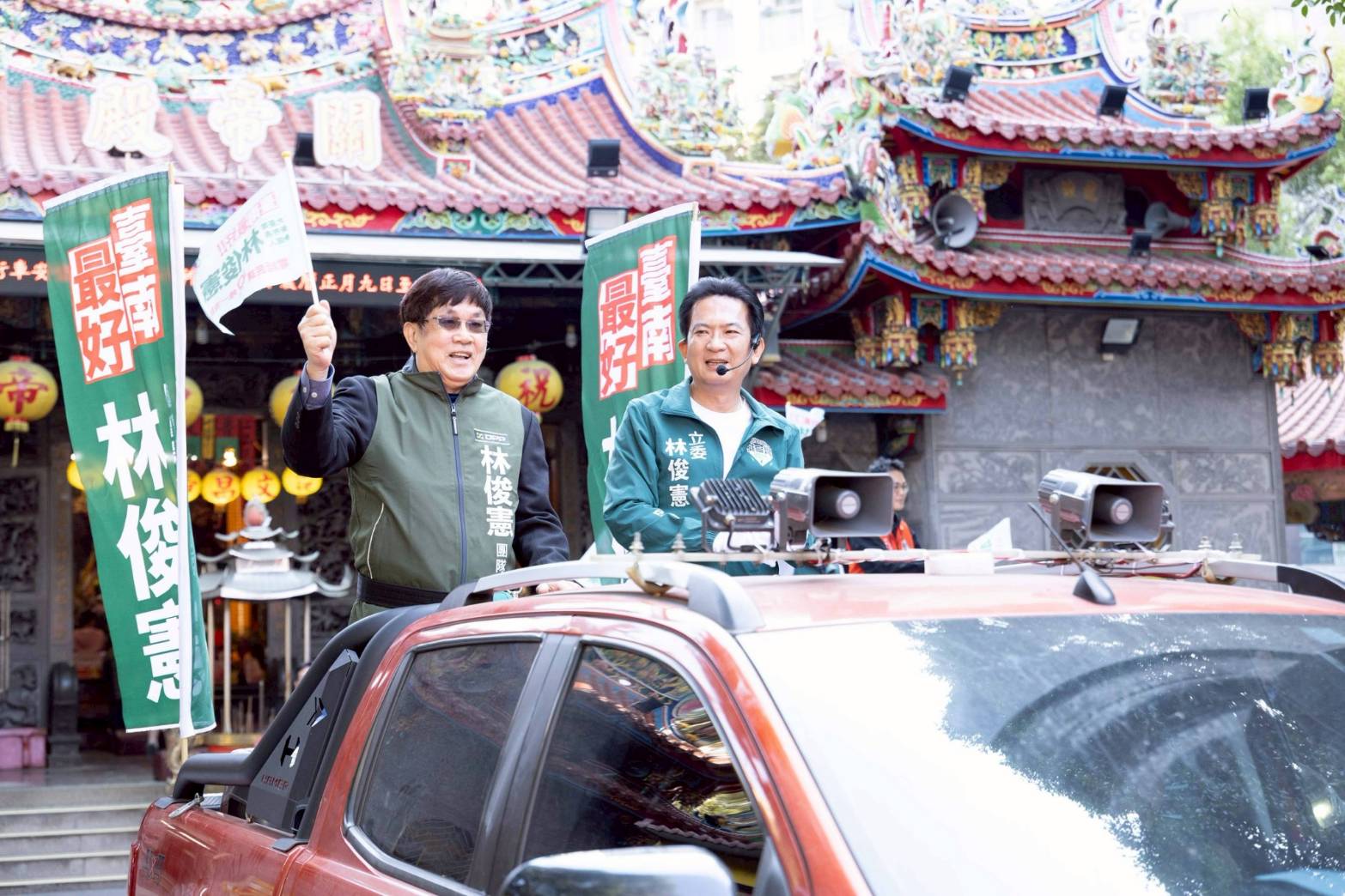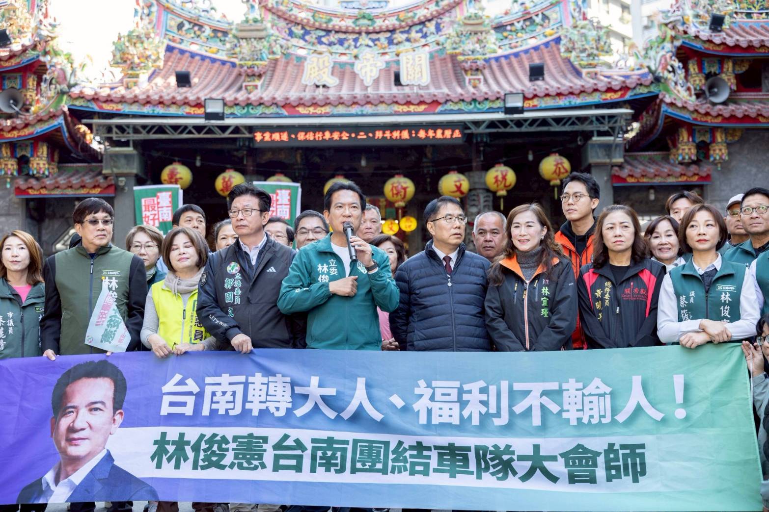 林俊憲表示,今天車隊從東區關帝殿啟程,其實在台南的民主發展中別具意義,過去賴清德競選市長與總統時,都會從關帝殿啟程。他也感謝郭國文、賴惠員、林宜瑾3位立委,及25位議員同志,跨選區前來支援,展現新台南隊的團結氣勢。