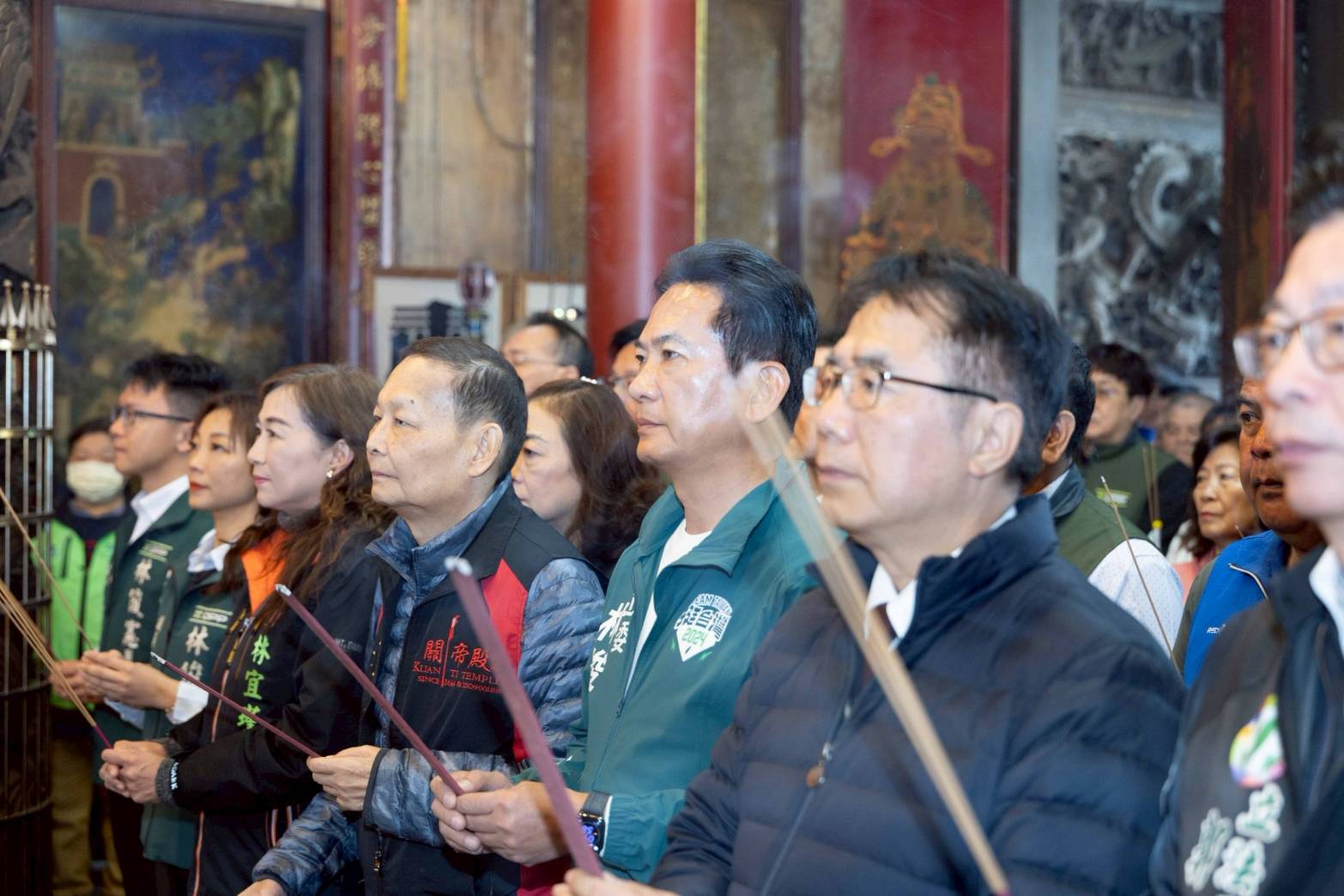 【記者邱仁武/台南報導】民進黨台南市長參選人林俊憲,今(11)日從東區關帝殿出發,在把握選前黃金時刻,在市區遊行爭取市民支持。在出發前,台南市長黃偉哲現身,與林俊憲共同上香祈福,期許市政順利交棒,市民生活持續進步。