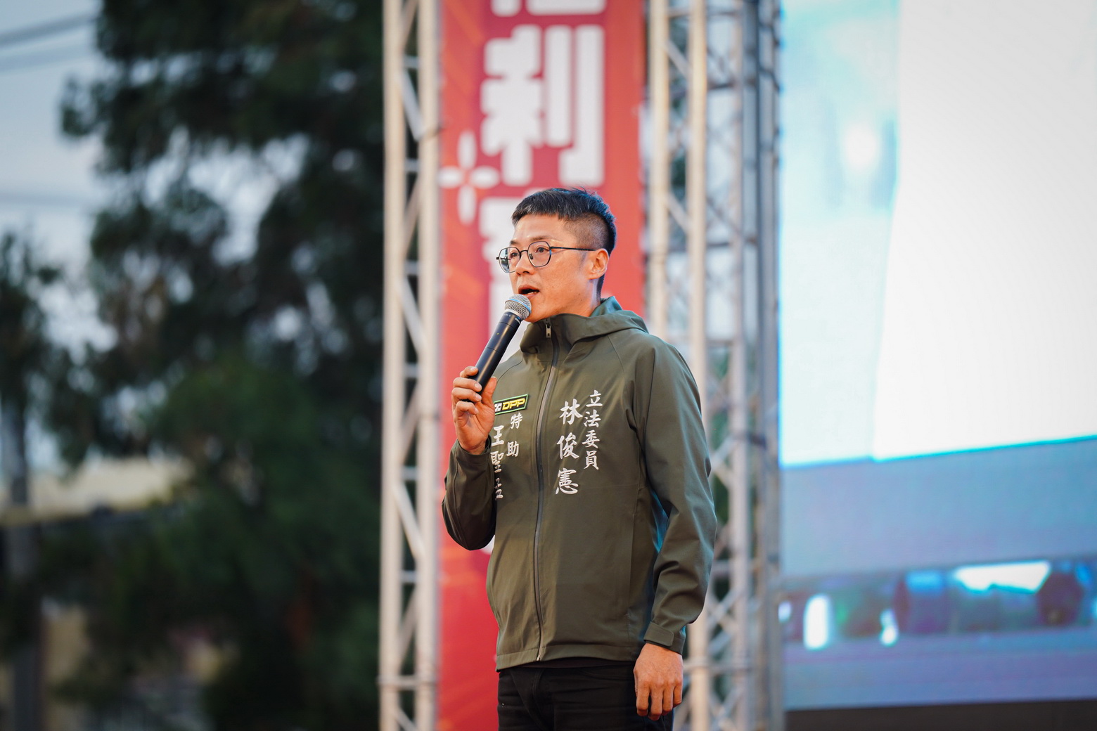 林俊憲最後壓軸登台表示,台南要成為照顧家庭與下一代的城市,他是全台灣第一個提出國中小營養午餐免費的人,並把學生營養從「二果一乳」升級為「二果二乳」,讓孩子吃得健康、家長更安心。他特別感謝黃偉哲市長支持這項政策,也直言這項政策被對手抄走,代表林俊憲提出的方向是對的、人民有感的。