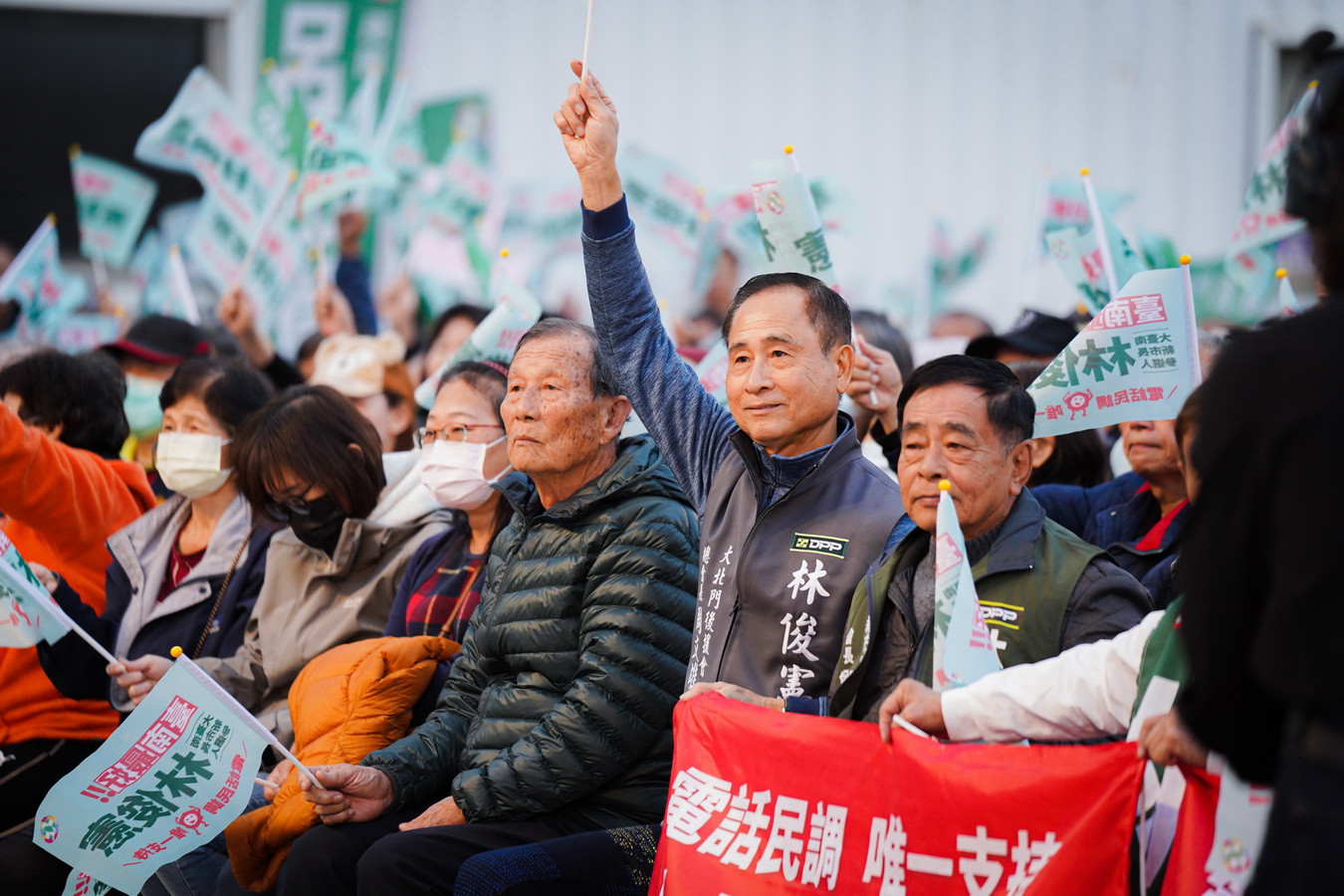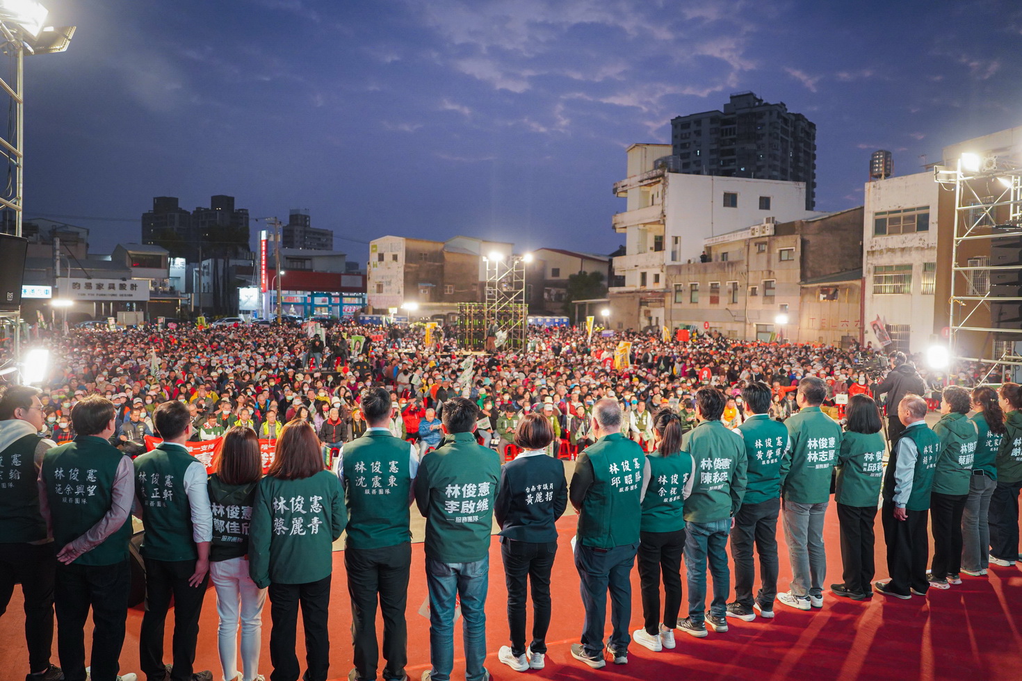 在初選倒數的黃金時刻,黨內外重量級人士也齊聚永康站台表達支持。包括台南市長黃偉哲、立法委員賴惠員、郭國文、林宜瑾,台南市議長邱莉莉、副議長林志展,以及二十多位台南市議員,包含王宣貿、李宗翰、沈家鳳、蔡蘇秋金、謝舒凡、陳秋宏、余柷青、邱昭勝、黃麗招、蔡麗青、朱正軒、黃肇輝、沈震東、周嘉韋、李啟維、林依婷、李宗霖、蔡筱薇、郭鴻儀、楊中成、鄭佳欣、施余興望等人到場聲援,現場氣氛凝聚,充分展現林俊憲在黨內與地方的整合實力與團結氣勢。