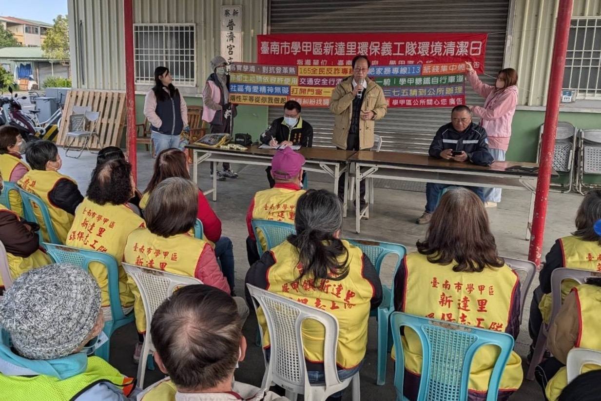 【記者邱仁武/台南報導】台南市學甲區公所昨天在新達里新寮普濟宮辦理115年度「環境清潔日」活動,雖然天氣寒冷,仍然有需多環保志工參與,場面熱烈。