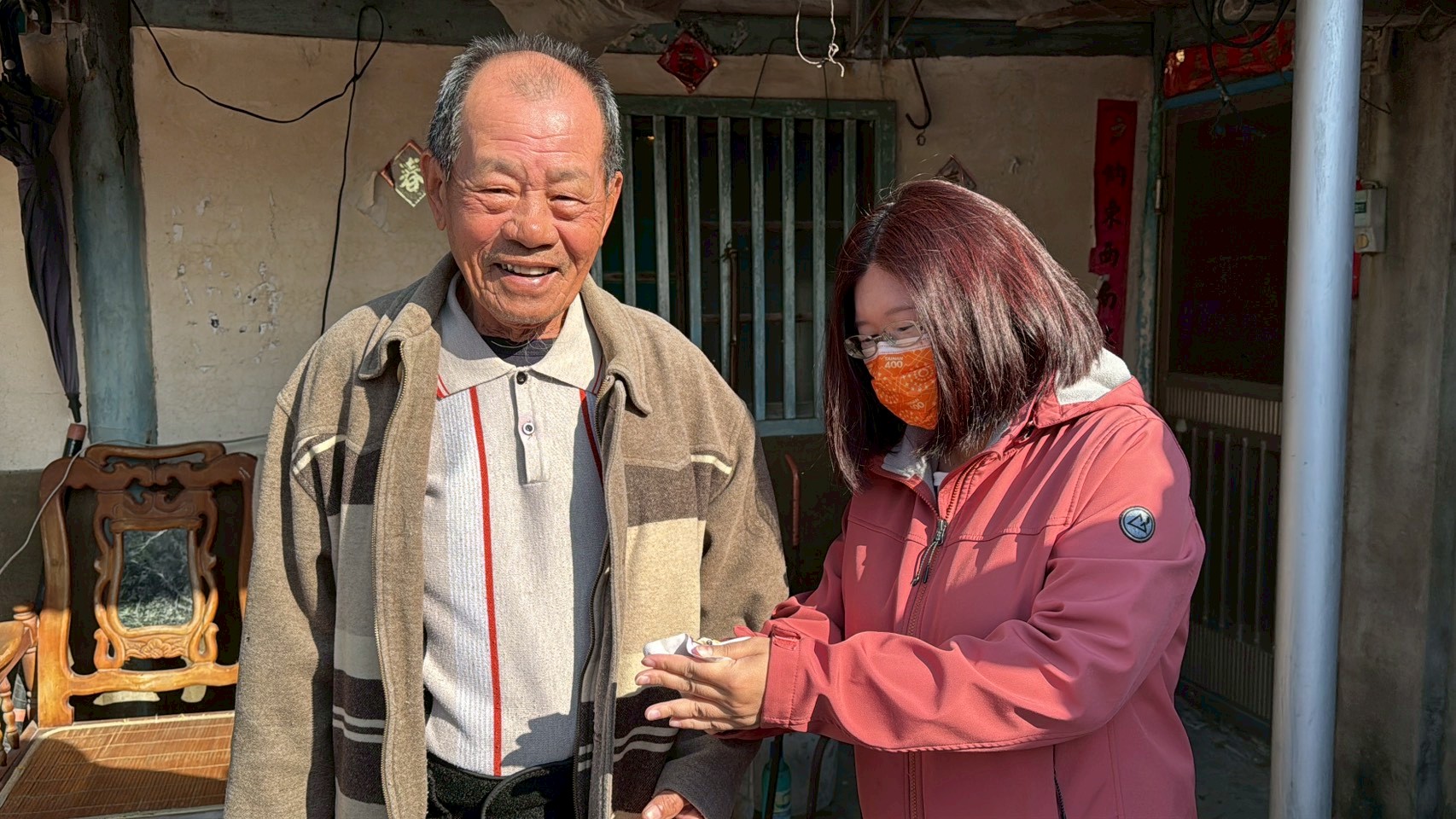 林建男區長說,在親訪送暖過程中,區公所另贈送暖暖包,同仁亦展現細膩服務,實際示範暖暖包使用方法,並針對冬季高頻率使用的電熱設備進行安全衛教,叮囑長輩「溫暖更要安全」,嚴防電熱器及老舊電線帶來的風險。