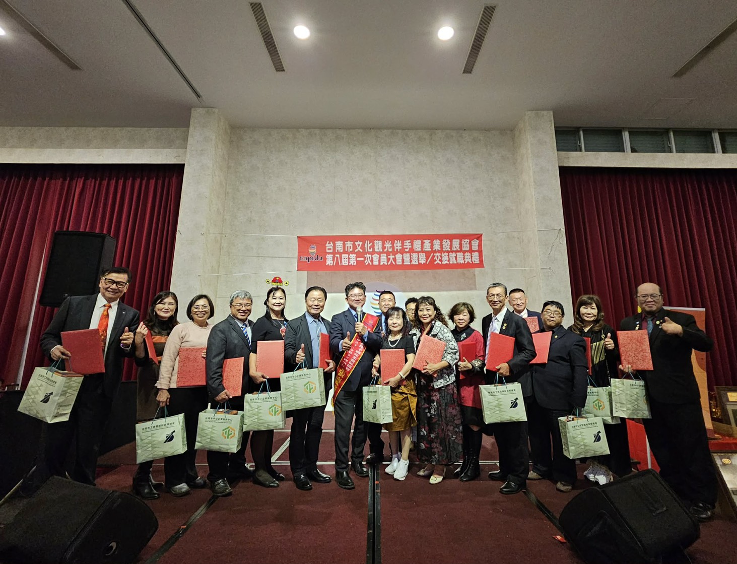 榮譽理事長蔡炎文、陳甲乙、戴泳明強調,台南市文化觀光伴手禮產業協會在張慶鐘理事長續任帶領下,將持續扮演產業橋梁角色,凝聚會員向心力,共同為台南文化觀光與地方經濟發展努力。