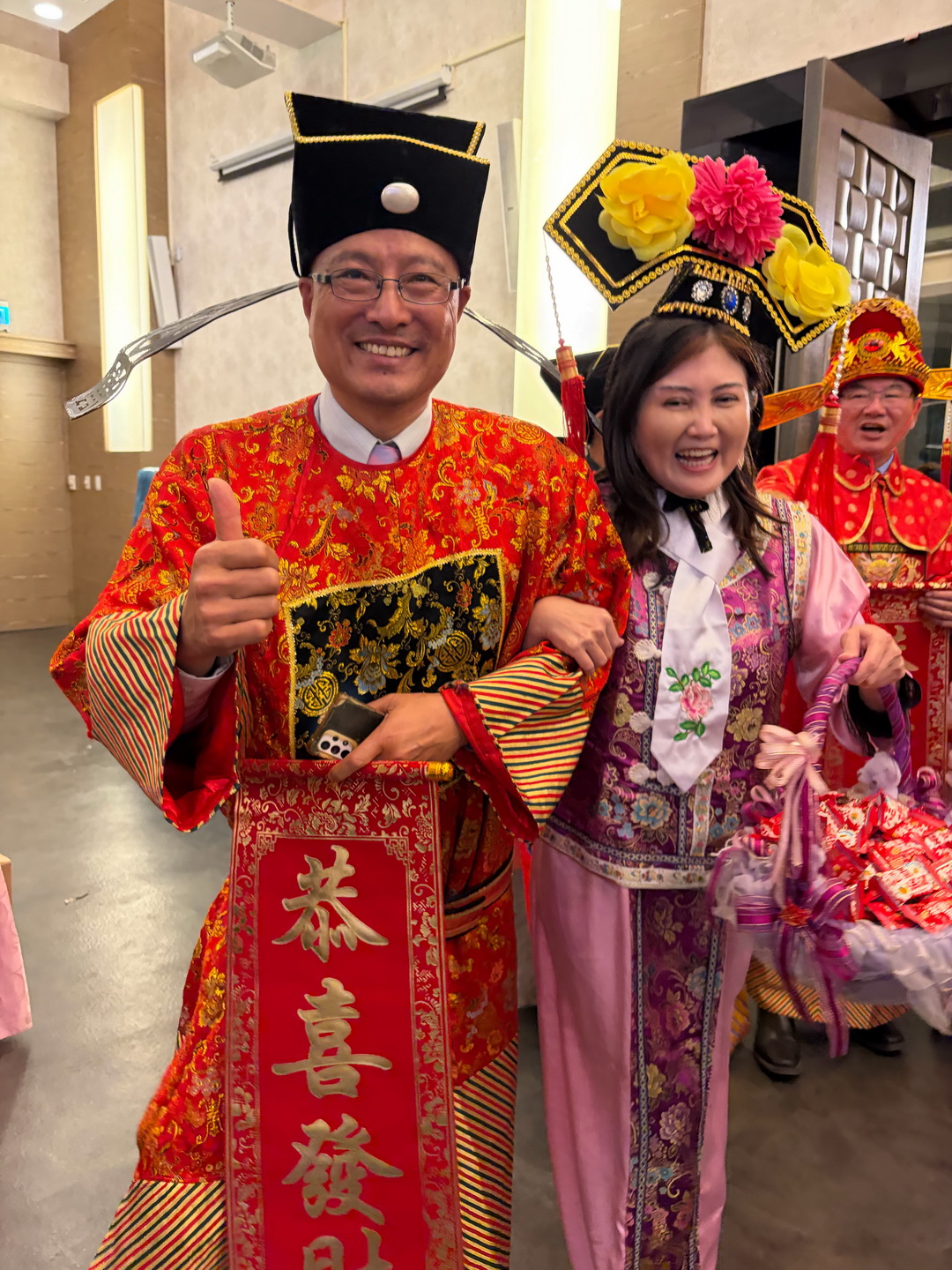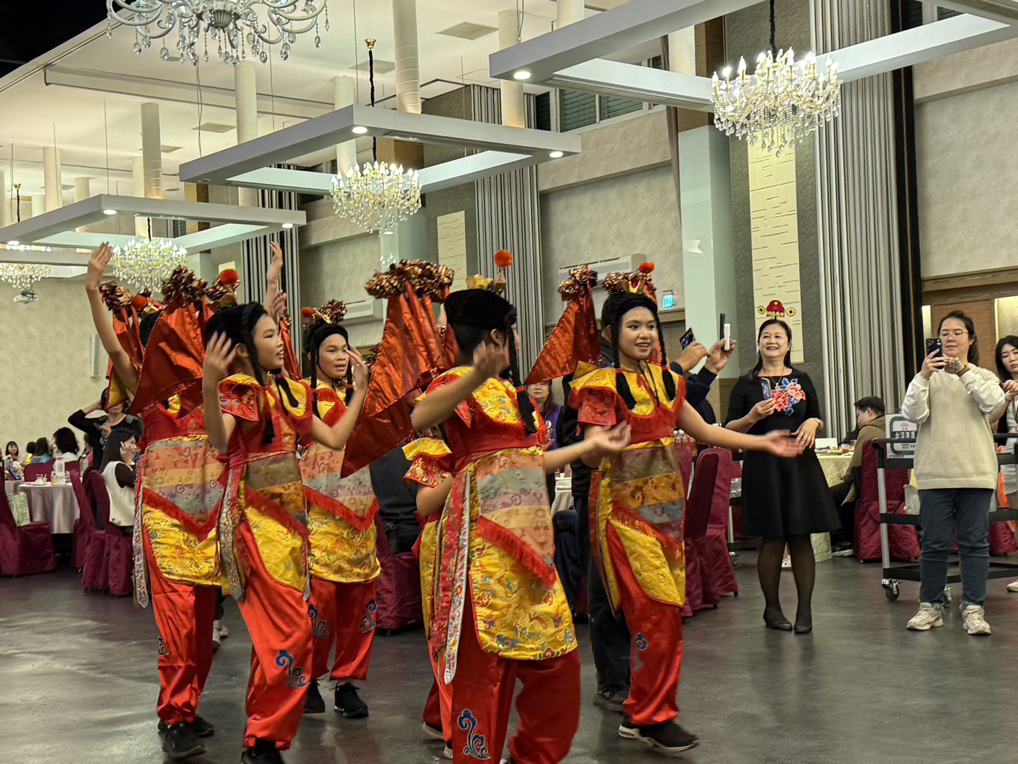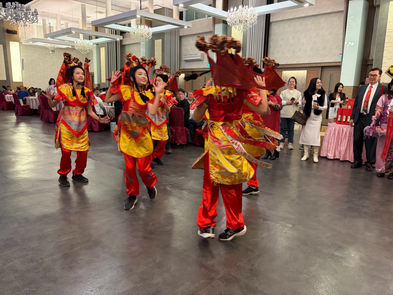 由於接近年節時刻,交接典禮在榮譽理事長蔡炎文、陳甲乙、戴泳明及理事長張慶鐘等人扮演財神爺踩街,在新生舞蹈團三太子引領下進入舞台,達到最高潮。