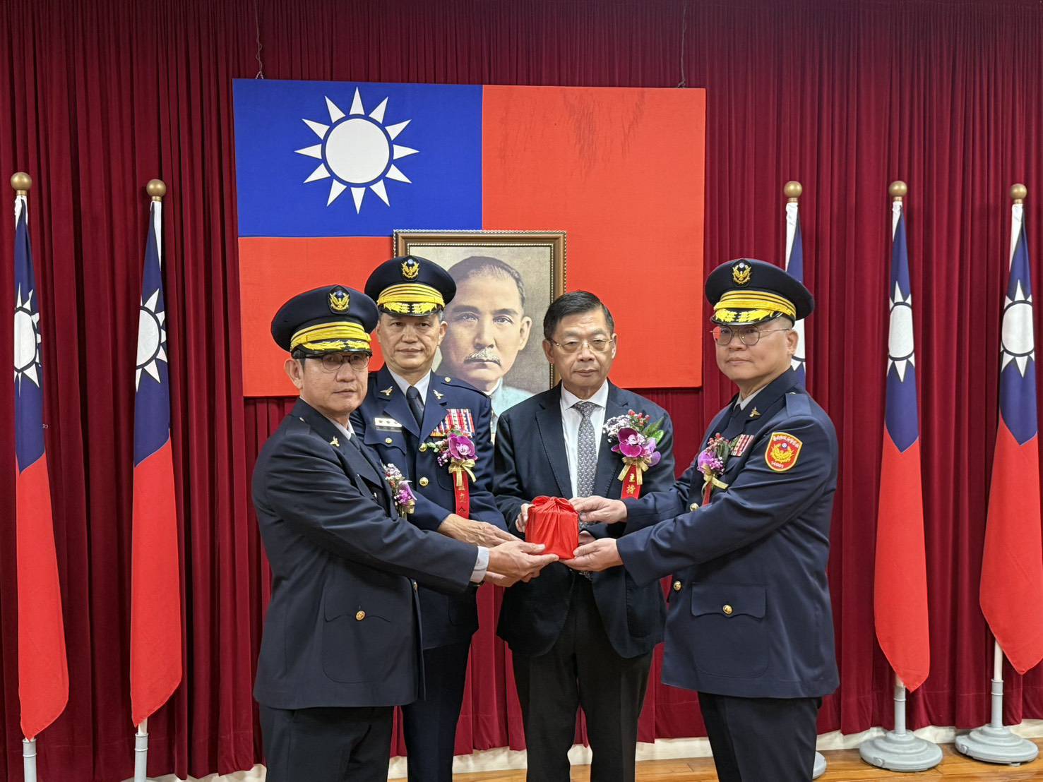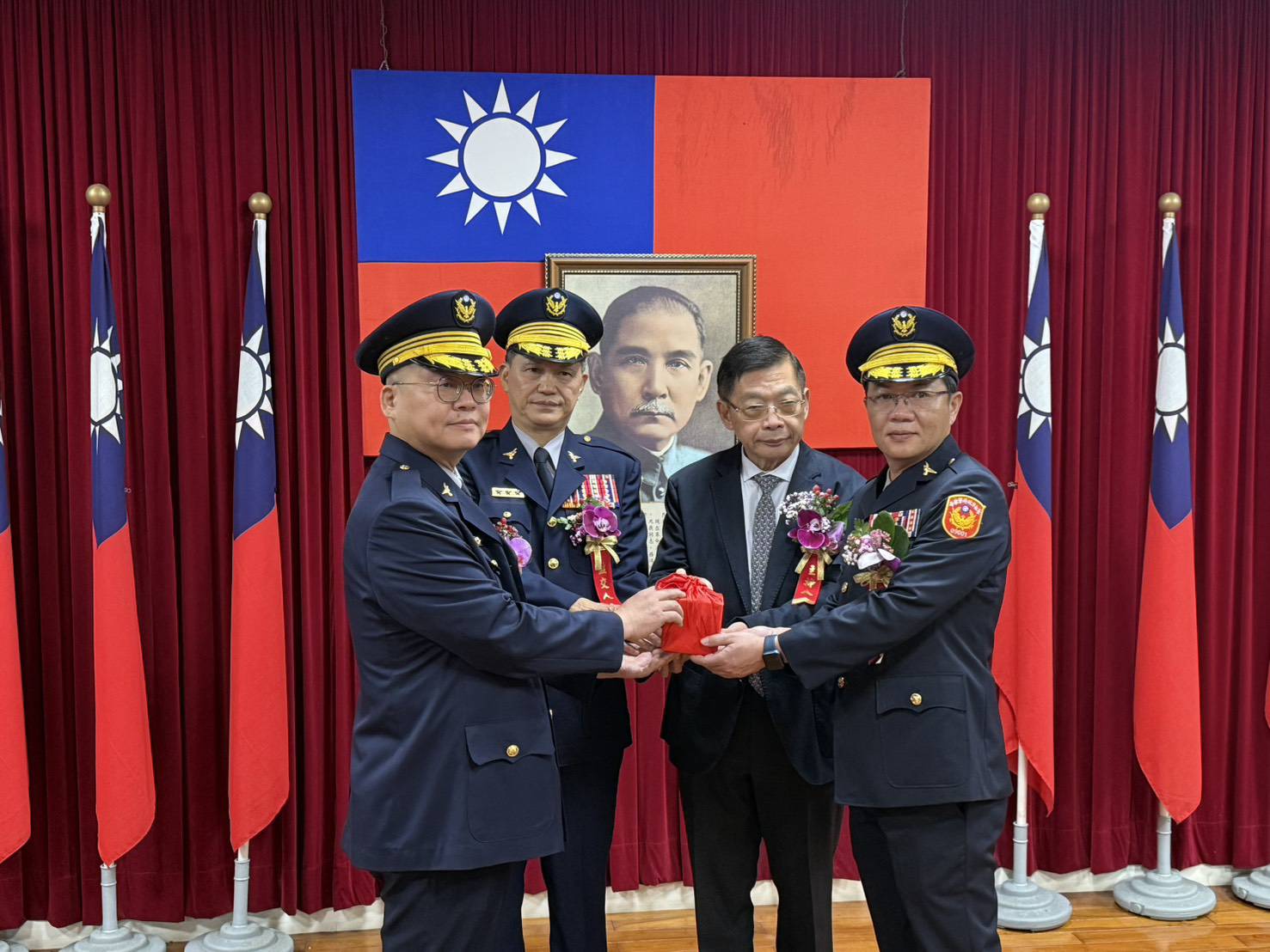 台南市副市長姜淋煌並代表黃市長對新任的分局長、大隊長以及所有的同仁提出3期勉