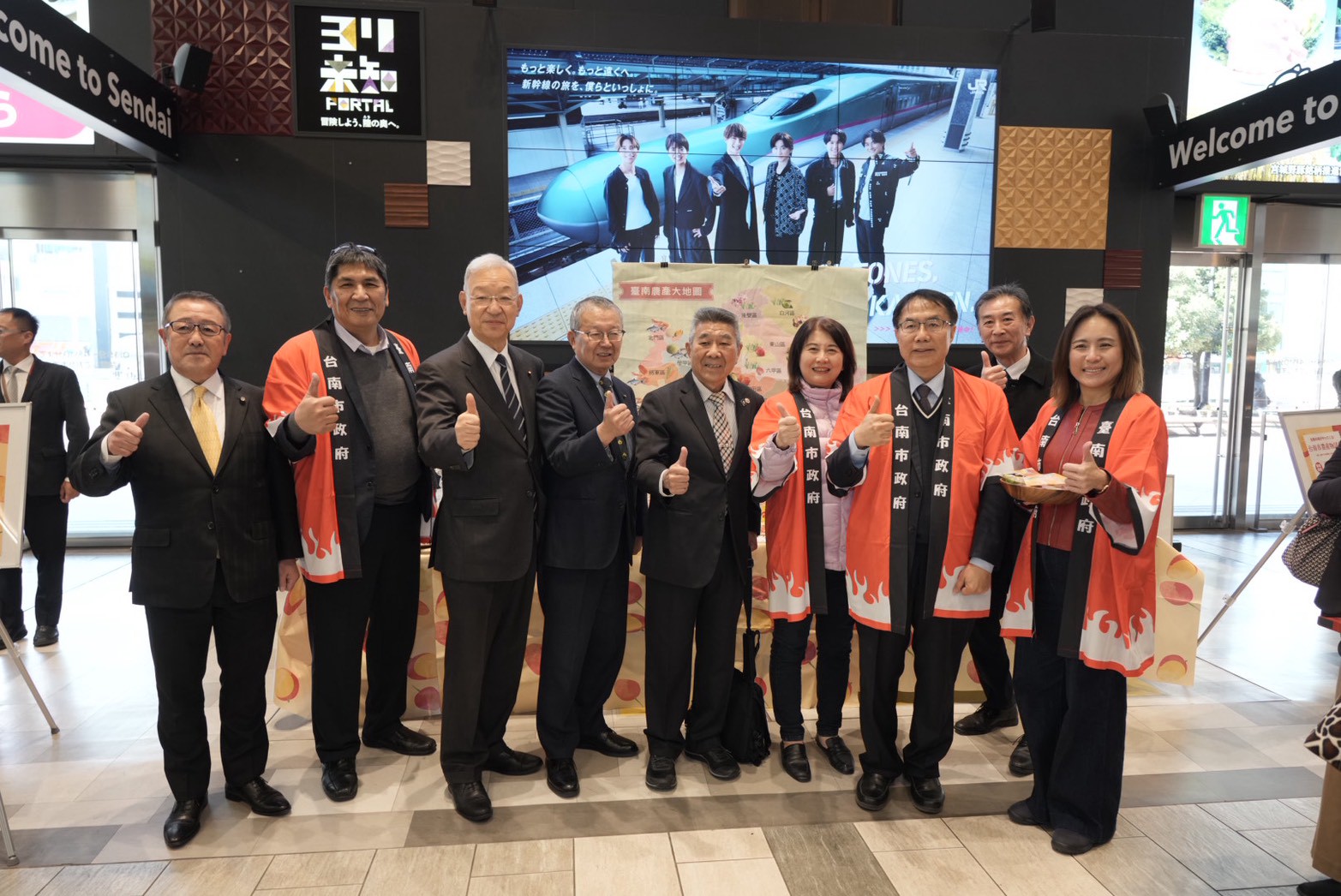 除了拜會外,市府團隊也特別於仙台車站2樓舉辦台南農特產品試吃活動。現場人潮湧動 盛況空前,在締盟20週年的重要時刻,與仙台的老朋友們一同共襄盛舉,品嚐來自台南的美味,分享這份友誼的成果。