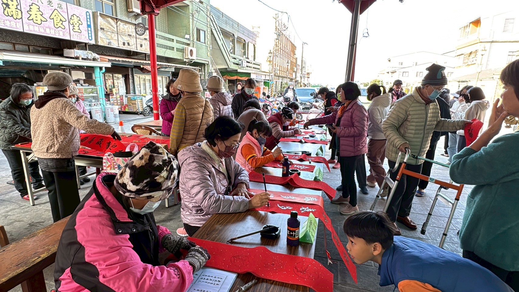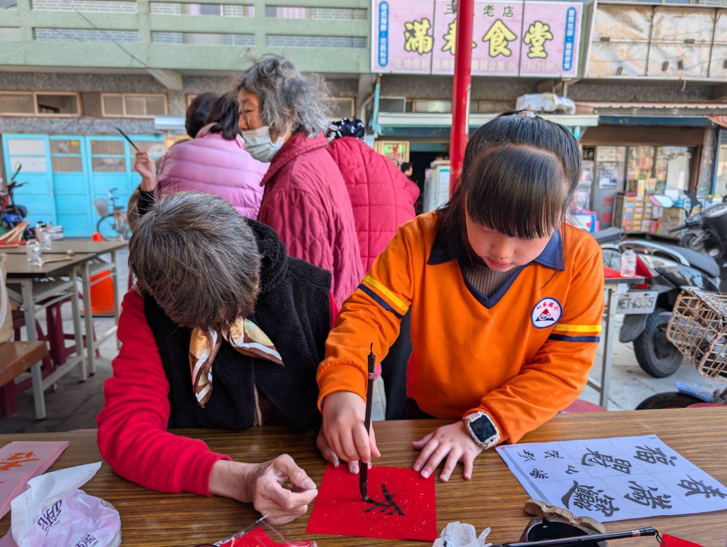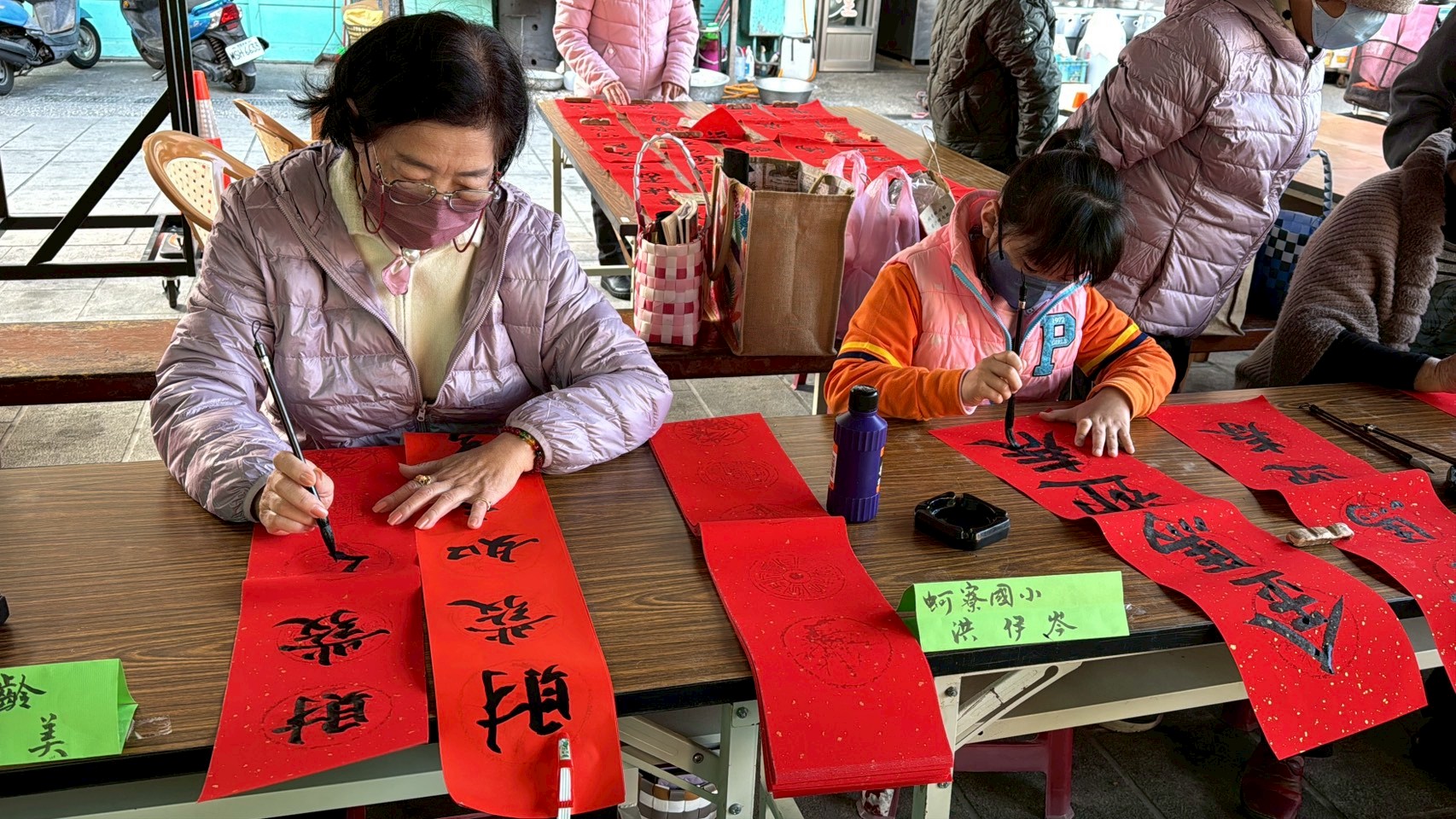 現場除了樂齡學習中心書法班和蚵寮國小學生當眾揮毫外,更設置「民眾自寫區」,由鄉親自己體驗寫春聯。這次活動最大的亮點在於蚵寮國小學生洪伊岑與樂齡學員宮美秀這對「祖孫檔」同台揮毫,展現了代間共學的溫馨與文化傳承,索取春聯的民眾非常熱烈期盼年年辦理送春聯活動。