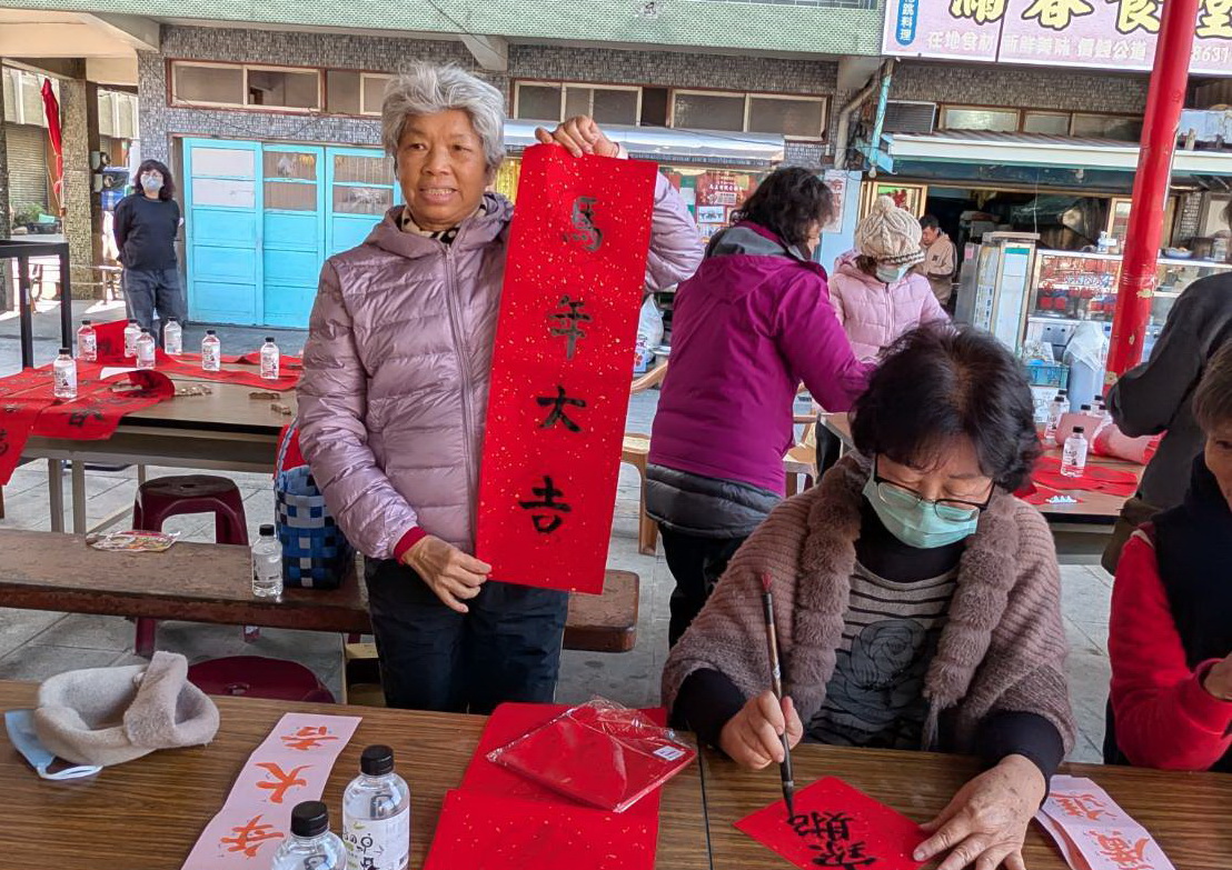 書法家王美淇指出,王建堯校長首次在北門區樂齡學習中心開設書法課程,引起熱烈學習反應,加上保安宮補助材料費,才有送春聯活動。藉由金馬迎春和馬上福來祝賀大家新年快樂。