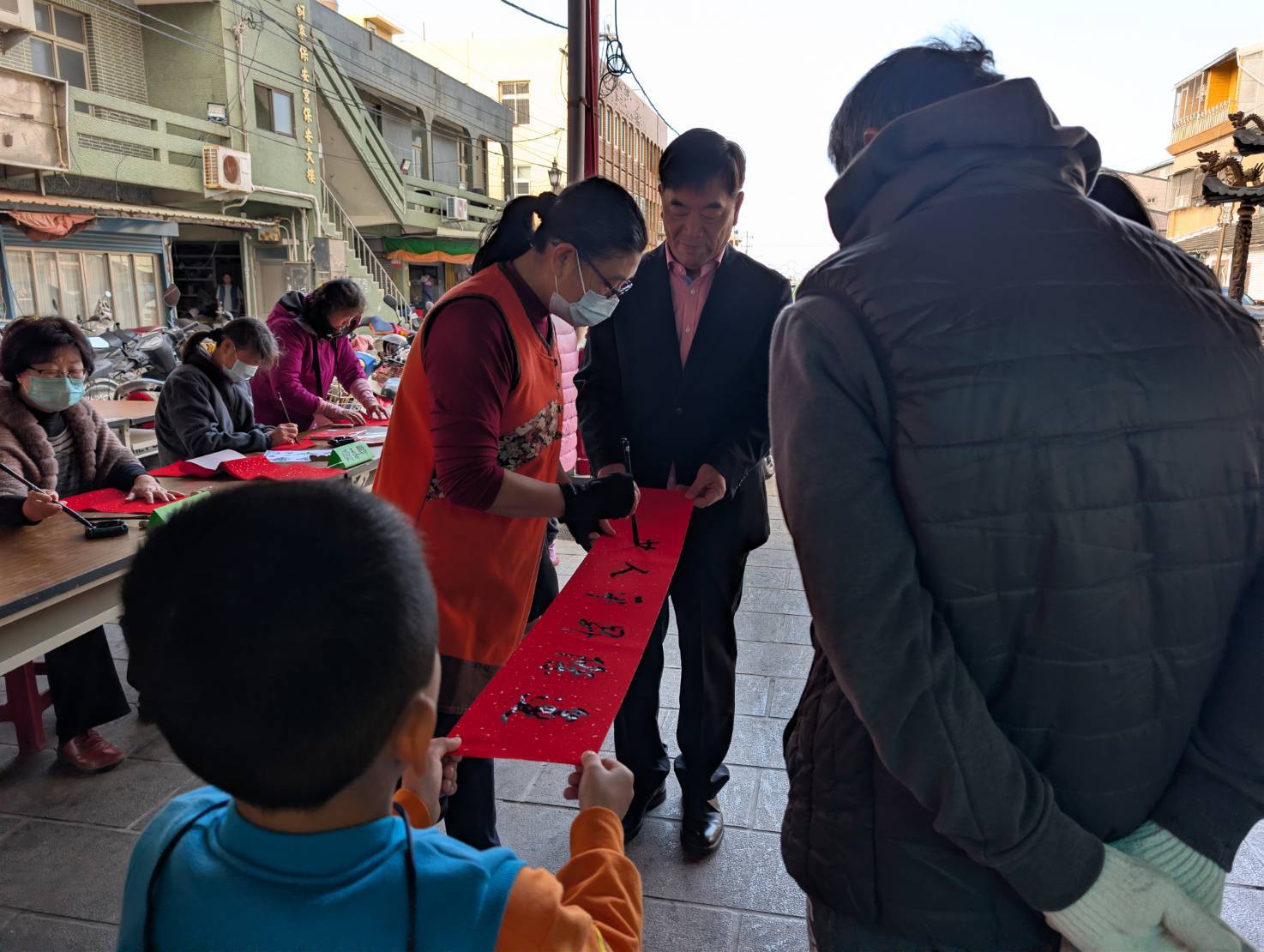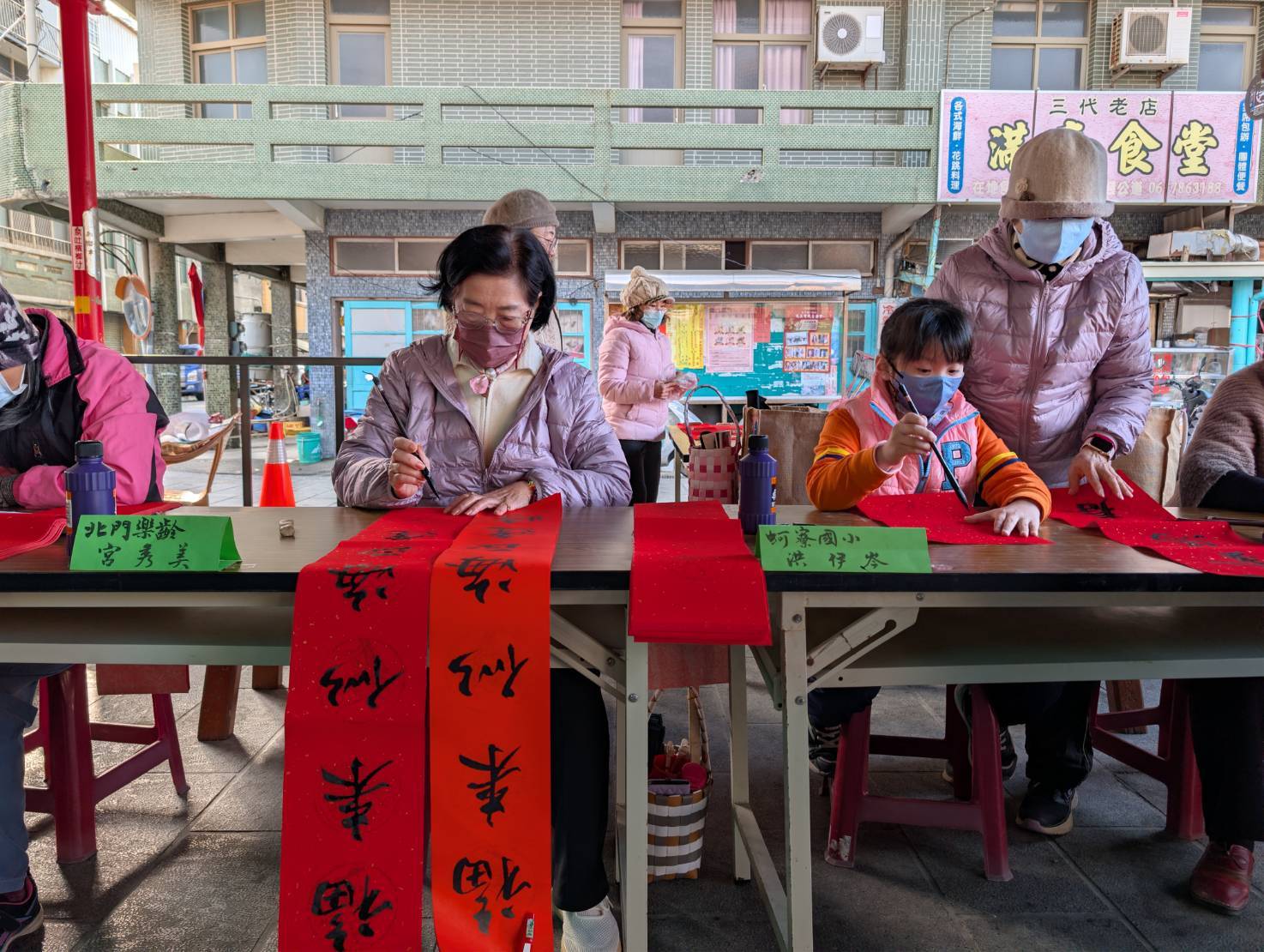 【記者邱仁武/台南報導】隨著農曆新年即將來臨,台南市北門區蚵寮國小和樂齡學習中心,22日與蚵寮保安宮、北門區公所、北門區衛生所攜手合作,由校長王建堯和書法老師王美淇帶領樂齡學員和學生25位,到蚵寮保安宮辦理「歲末春聯揮毫迎春」贈送活動,現場充滿濃濃年味。