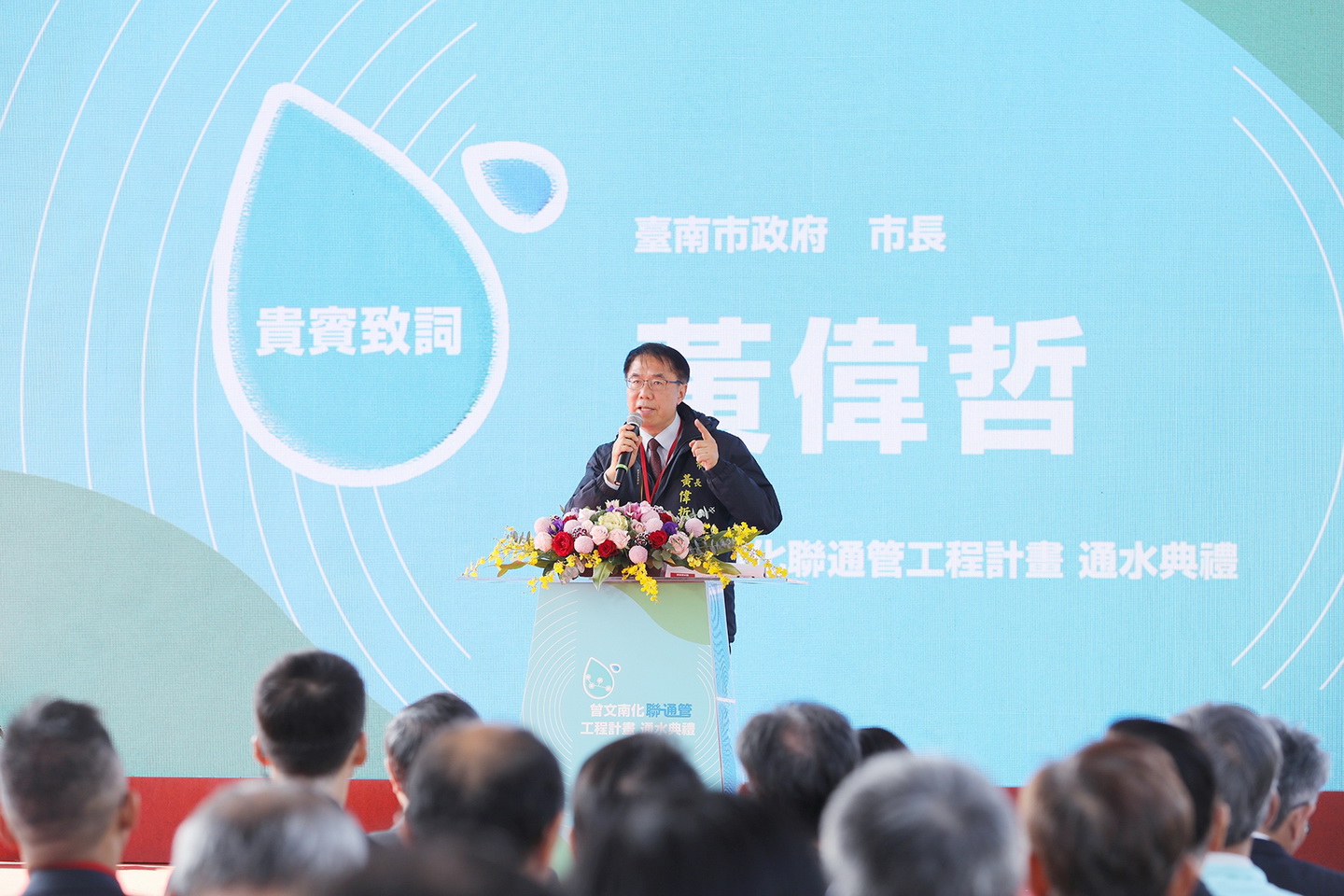 台南市長黃偉哲表示,隨著南部科學園區、沙崙智慧綠能科學城及相關高科技產業持續擴展,用水需求大幅成長,該工程完工通水後,將有效提升台南及南部地區整體供水調度能力與抗旱韌性,為市民生活與產業發展提供穩定可靠的水資源基礎。