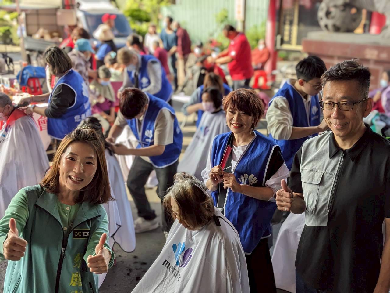 市議員蔡麗青也特別感謝今日愛心單位,包括長期協助義剪活動的曼都時尚髮廊、幫忙推拿的永健服務團隊,以及今天帶著許多長者來到現場熱情參加活動的樂活長照中心、帶著大學學生及中學生到現場書畫的吳老師書法班及各位書法家,以及出錢出力的天靈慈善會、蔡家吳府千歲會,有材企業社、好漾食品、臺南市經絡美學教育協會等單位,有大家共同的付出,才能圓滿每一場活動,讓社會的愛心在每個角落扎根,感謝大家站在第一線的付出。