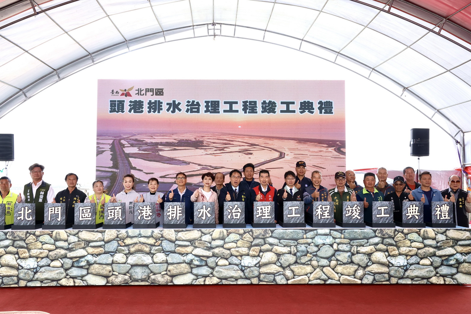 竣工典禮包括經濟部水利署6河分署長林玉祥、立委陳亭妃、市議員謝舒凡、蔡秋蘭、立委林俊憲特助林鴻志、賴惠員秘書等參與,祈福地方未來風調雨順、欣欣向榮。