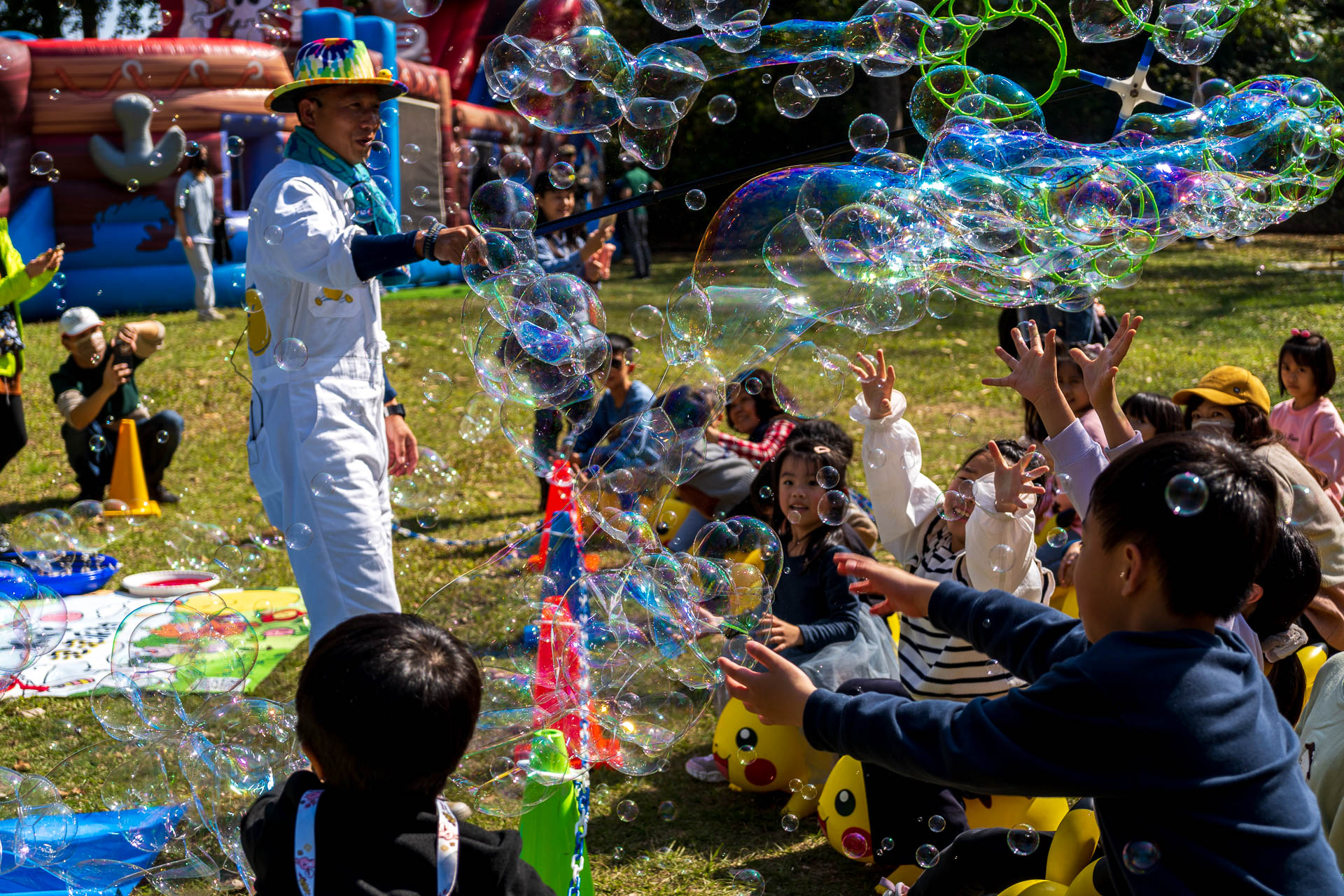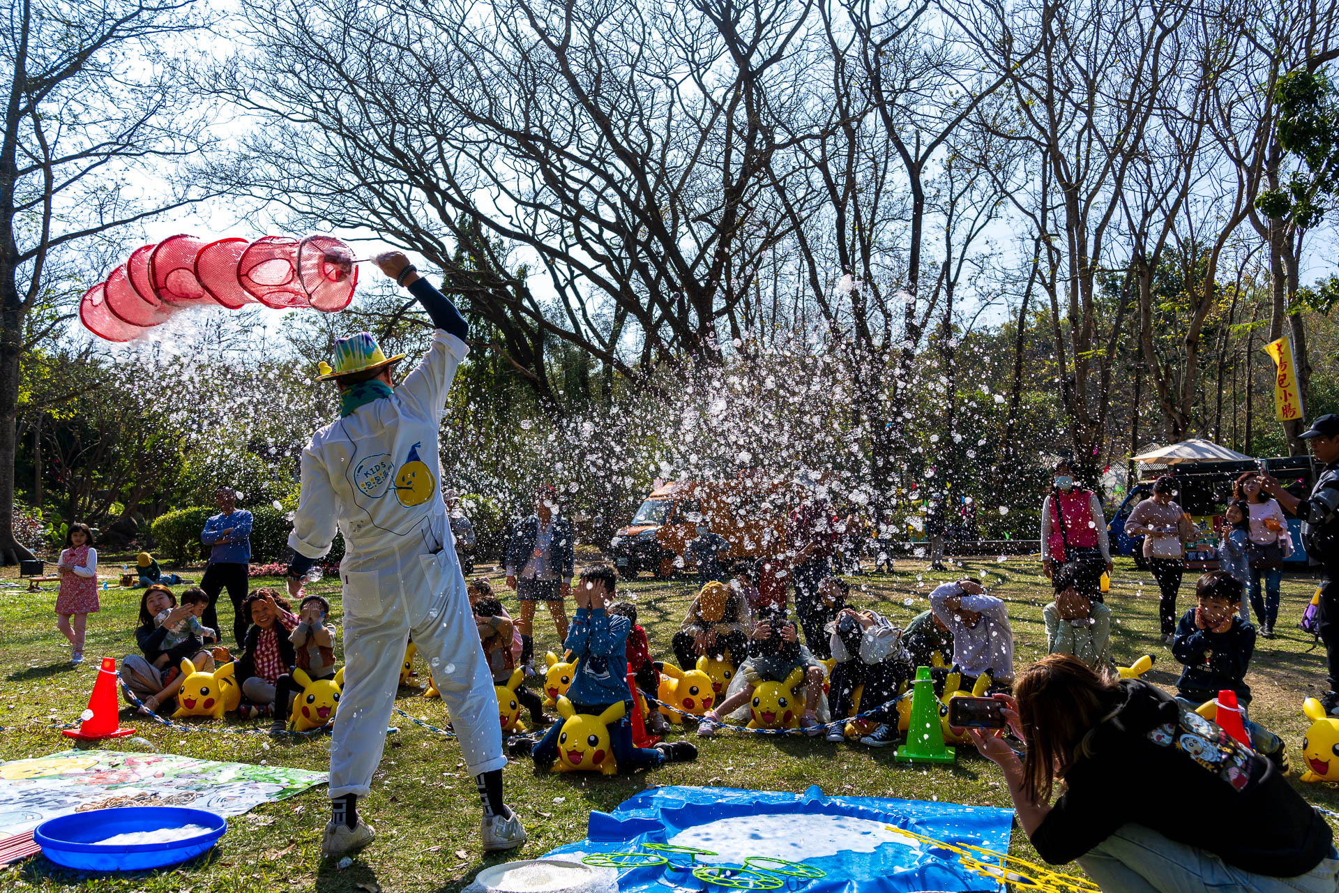 大草原上的「歡樂泡泡秀」與「親子泡泡體驗」是尖山埤春節檔期的重頭戲。初一至初四每日10:00及14:00 在大草原上演互動泡泡秀;11:00及15:00免費提供50組親子泡泡體驗,家長們可以在草地上放鬆享受野餐,看著孩子們在泡泡中追逐歡笑,在優閒的氛圍中感受幸福的模樣。每日10:30、11:30、14:30、15:30現場還舉辦「唱跳姊姊帶動唱」由唱跳姊姊及青蛙偶裝於大草原舞台區與親子互動,用小朋友熟悉的流行舞曲釋放孩子的熱情與活力。大草原周邊步道還設有「野餐補給站」,設置多家在地特色小吃攤位,並營造野餐意象,歡迎全家人在這裡享受快樂美好的親子時光。