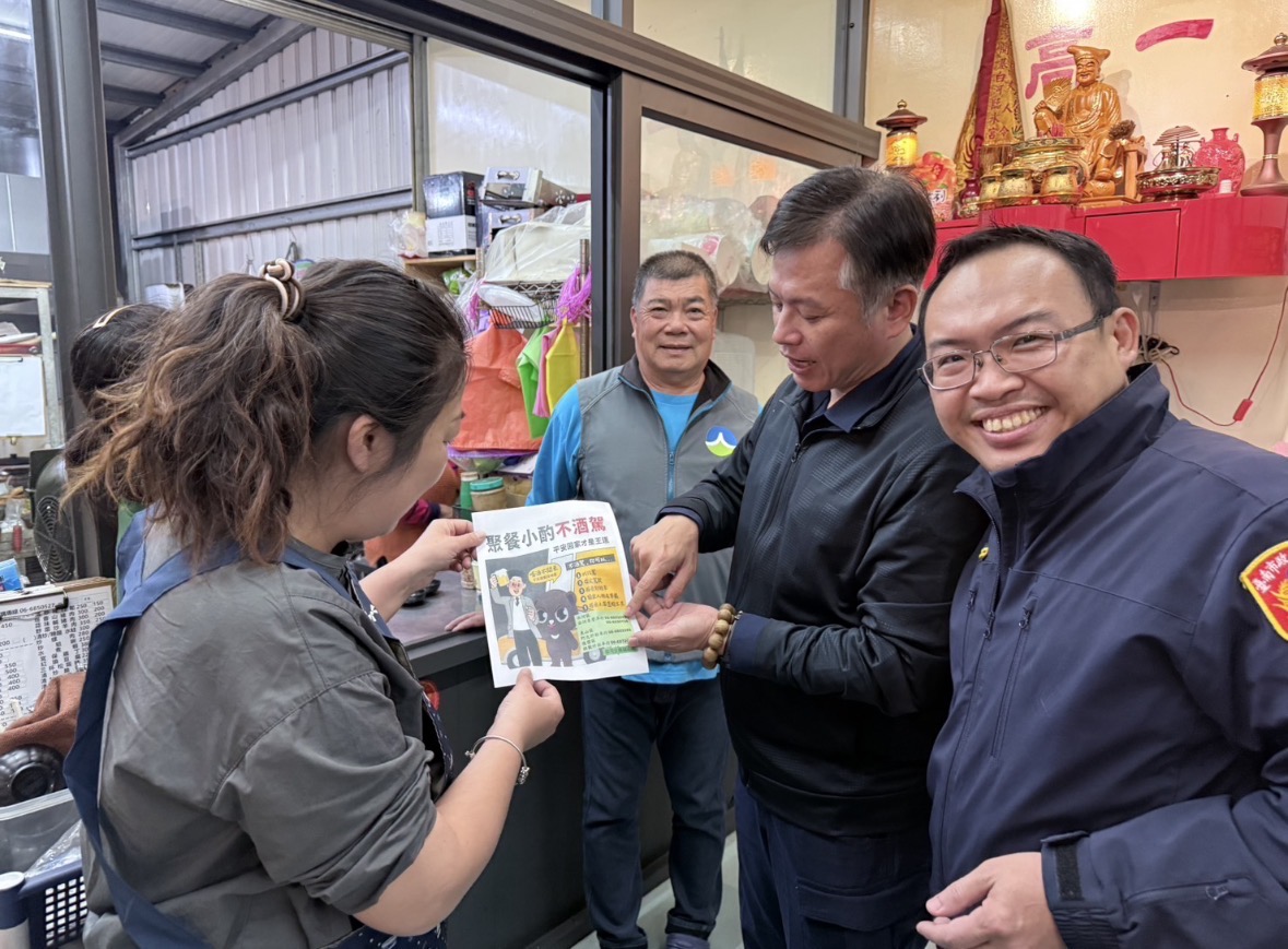 分局長陳志埕在現場除逐桌向用餐民眾發放宣導品,也特別提醒: