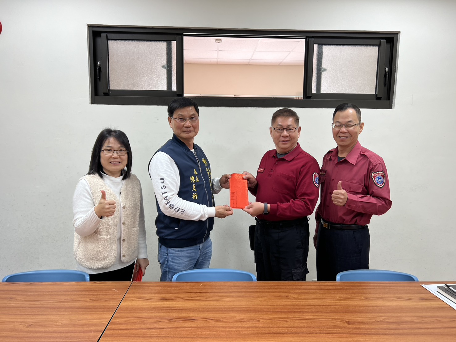 陳炎祈處長表示,警消同仁長年不分晝夜投入救災、救護等工作,犧牲與家人團聚的時光,守護著市民的安全與福祉。雖然他們缺席了尾牙的溫馨,卻用實際行動守住了社會的平安。希望藉由這次的慰問活動,能讓所有警消同仁感受到社會大眾的支持與溫暖,也祝福大家新的一年平安順遂、工作順利。