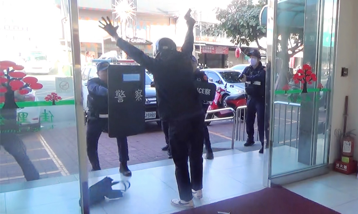 【記者邱仁武/台南報導】春節前夕,因應民眾提領現金需求大增,各金融機構亦備齊足額現金供民眾領取,金融機構安全維護更為警方年節前夕重點工作,有鑑於此,佳里警分局昨天特別與京城銀行佳里分行共同舉辦防搶演練,提升相關防搶意識,藉以提升員警臨場反應能力及強化銀行行員應變及警覺性。