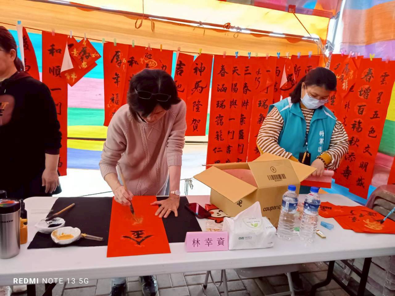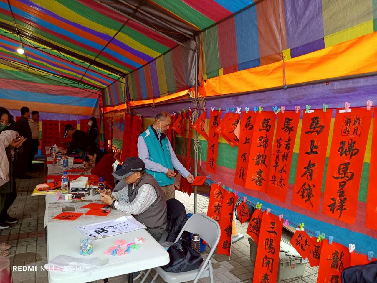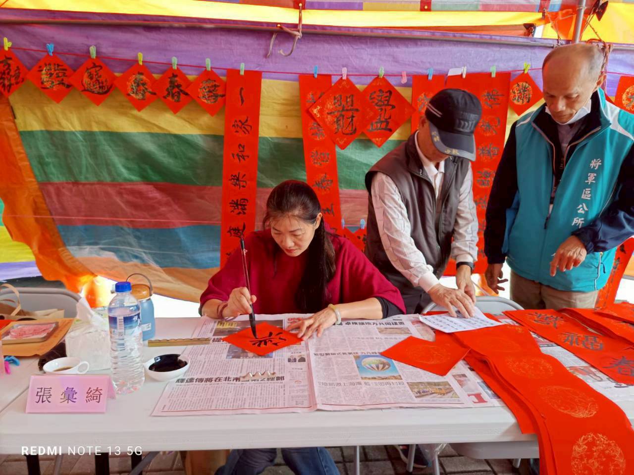 將軍區長張介軍親自揮毫書寫春聯揭開序幕,展現對傳統文化的重視與支持,邀請昭清宮書法班的書法大師林幸資、張彙綺、楊奇原及陳瑞祥現場揮毫書寫春聯,免費提供民眾索取,讓新春的祝福透過書法藝術的傳遞。市議員方一峰及助理李寶桐及謝杉里長等共襄盛舉,每人限領一幅門聯,以及大小方聯、四言聯各1張,總數150幅。