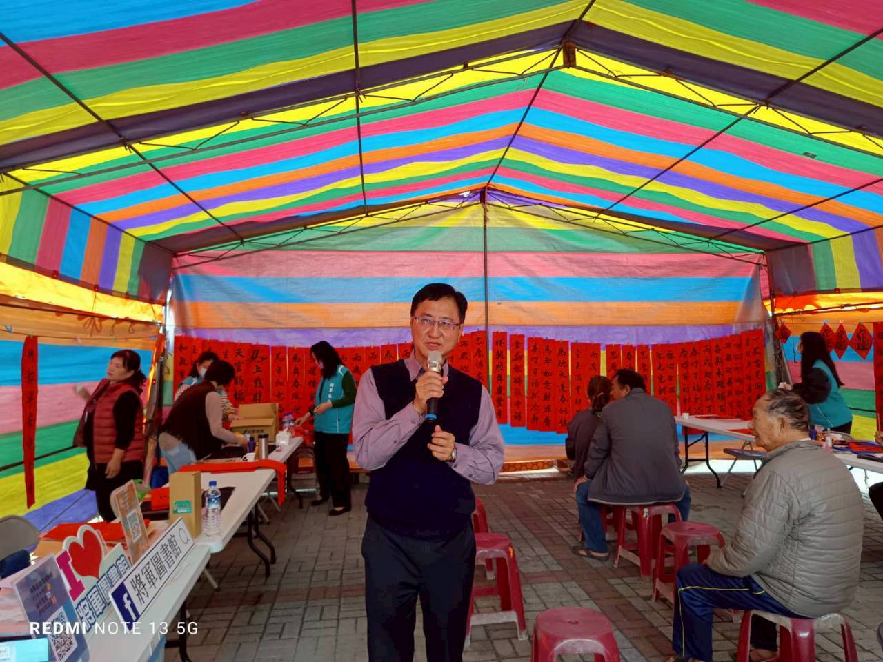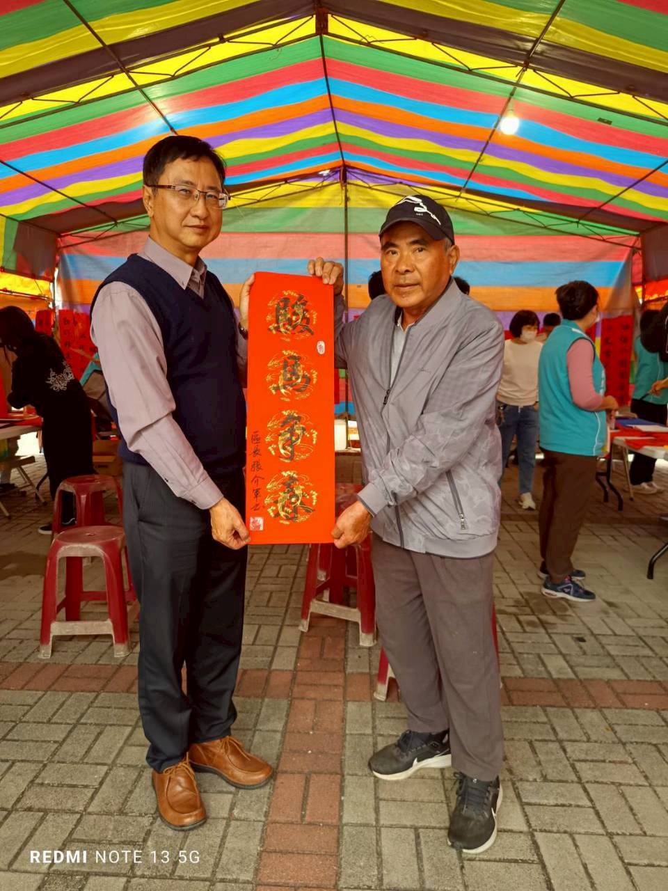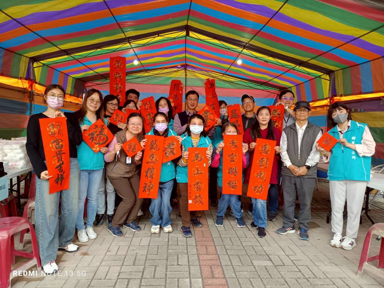 區長張介軍表示,農曆新年是台灣極具意義的傳統節日,透過新春揮毫活動,不僅讓民眾親身體驗書法之美,也藉由春聯傳遞新年祝福與正能量,期盼大家在新的一年裡都能平安如意、闔家歡樂。此外,現場設有圖書館宣導攤位,向民眾介紹圖書館館藏資源、閱讀推廣服務及辦證等相關資訊,並贈送精選書籍,讓新春不僅充滿年節氣息,更增添一份書香氣息。