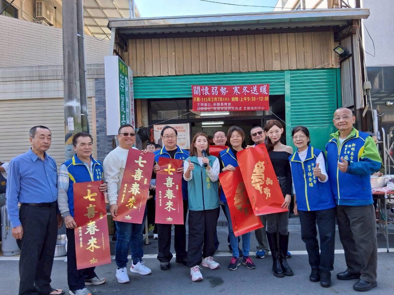 新順長青會會長陳惠菊、長安派出所所長黃俊榮,結合長青會力量,出錢出力,也在地方發放弱勢家庭物資,期許透過這樣的公益活動,關懷弱勢,並且凝聚社區居民感情及力量;現場除發放低收入戶物資,並且準備了多項美食小吃以發放賴清德總統一元福袋以及總統春聯,在地鄉親踴躍出席,感受濃濃春節氣息。