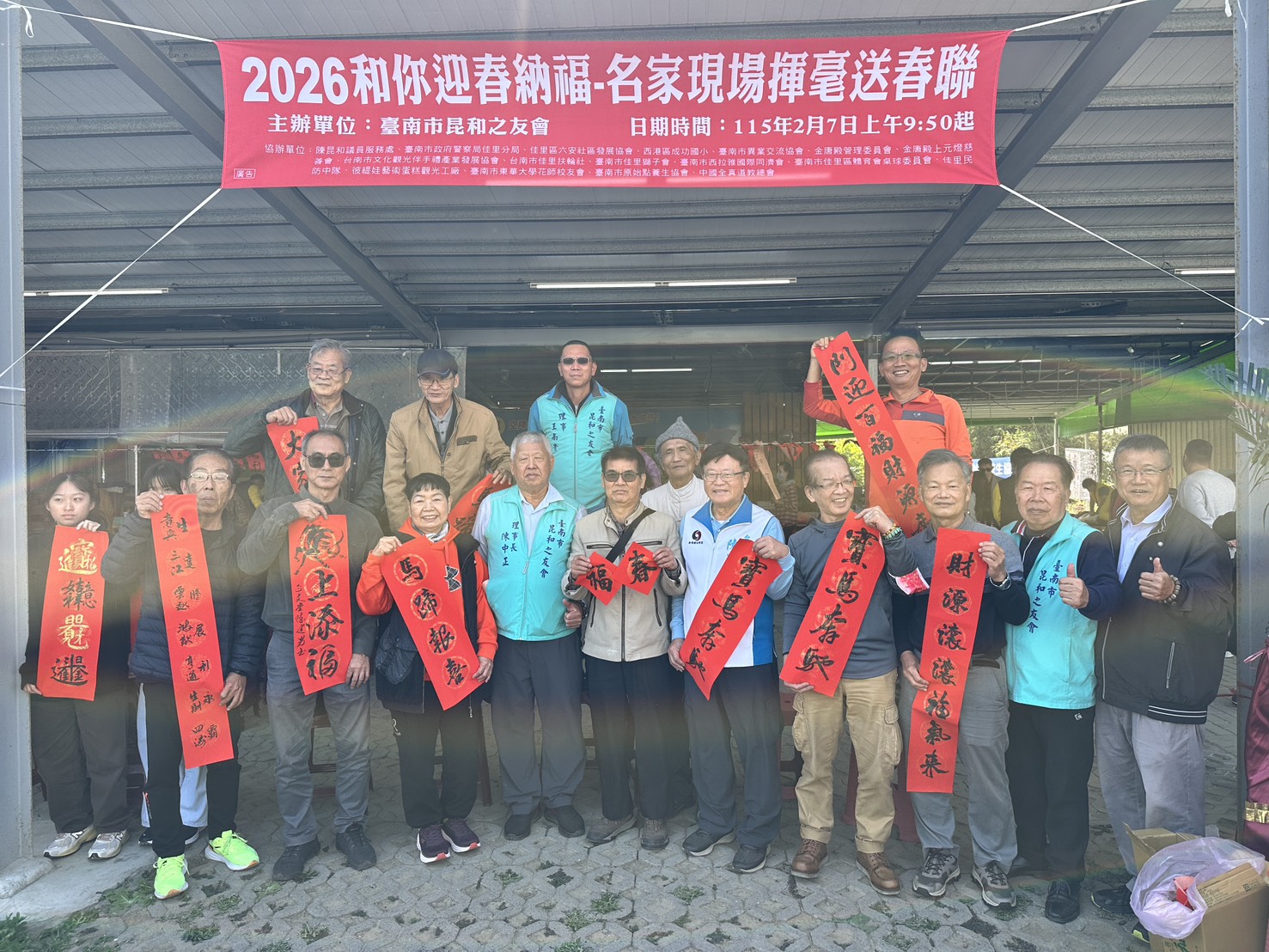【記者邱仁武/台南報導】農曆春節快到了!台南市昆和之友會7日結合市議員陳昆和服務處等17個團體,在服務處舉辦「2026和你迎春納福-名家現場揮毫贈春聯活動」,場面溫馨熱鬧。