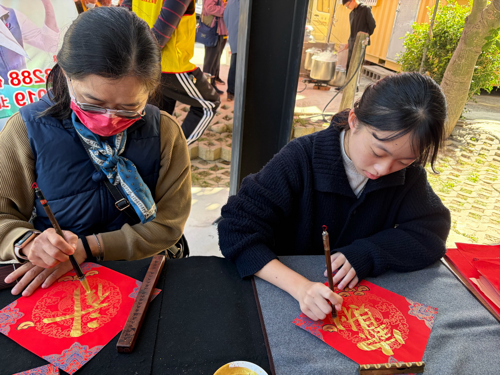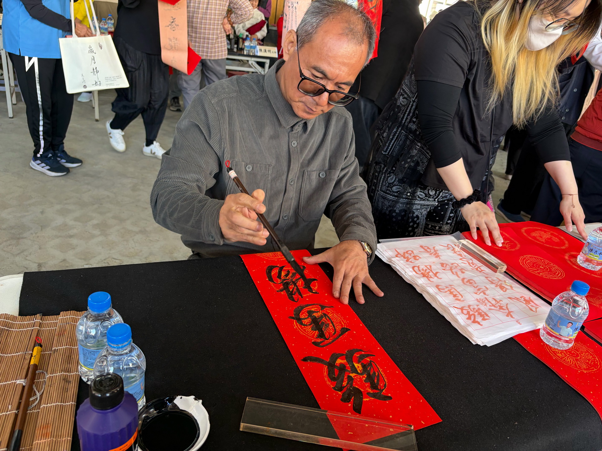 參與現場揮毫的書法大師與畫家有曾遜祥、陳建男、林忠佐、郭金保、侯兩傳、陳順豐、洪翔鵬及學生孫歆雅、吳兩錡等人。現場也提供湯圓、點心供參與民眾享用,共同迎接馬年農曆春節。