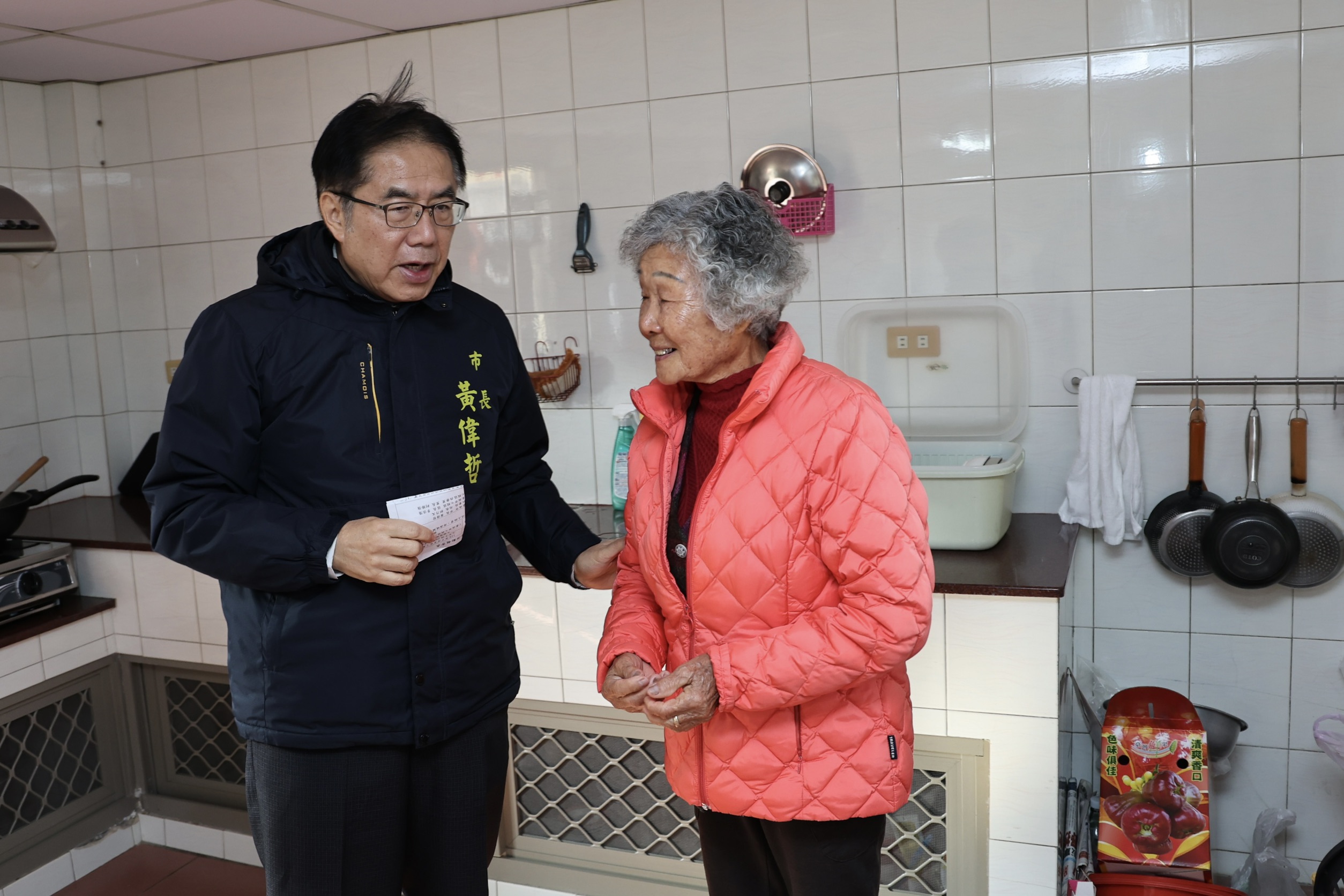 七股區獨居長者陳黃阿嬤感性說,感謝市長黃偉哲與市府團隊的關心,讓她在寒冷天氣中感受到實實在在的溫暖與支持。