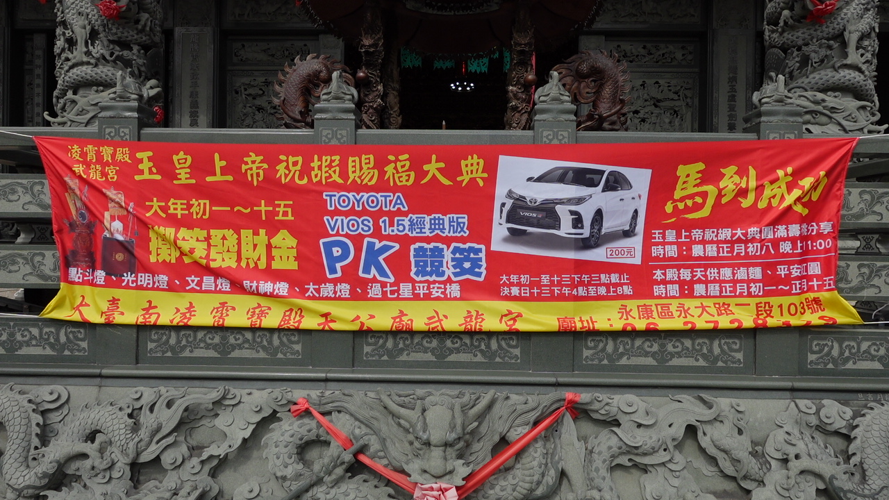 【記者邱仁武/台南報導】台南市永康區【大臺南凌霄寶殿武龍宮】為迎接新春祈福熱潮,今天宣布將於農曆新春期間初1到15日,盛大舉辦「新春擲筊汽車200元PK活動」,200元就可以有機會獲得轎車,主委王大明邀請全國信眾走春參拜、共沐神恩。