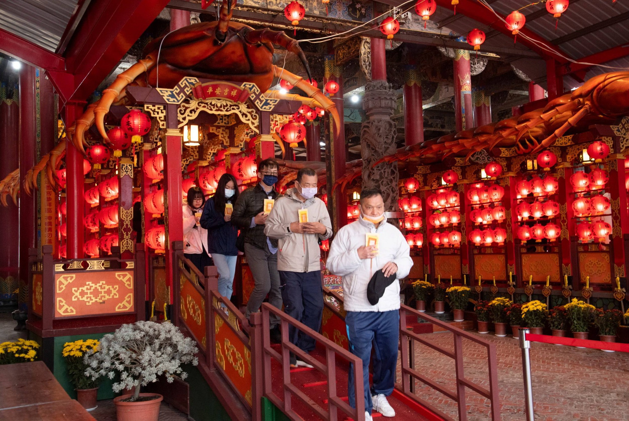 大年初1清晨5時開廟門,參與信眾廟方贈送「旺」字祈福吊飾及平安袋給參加民眾,庇佑平安好運。