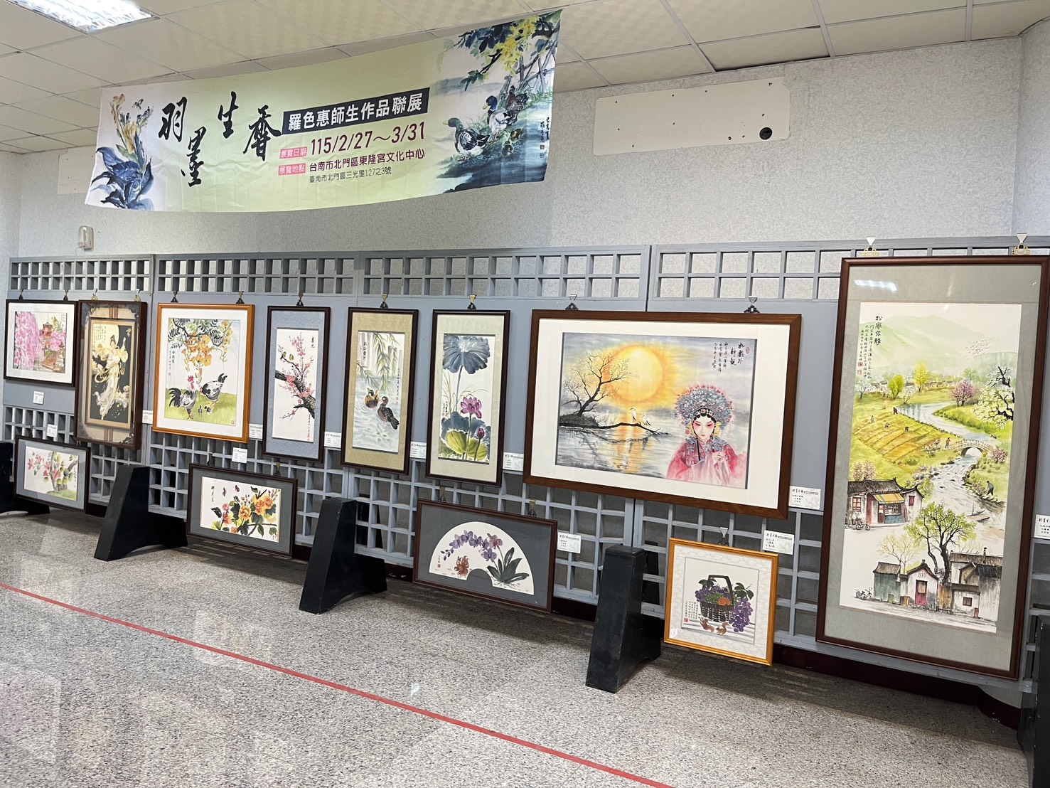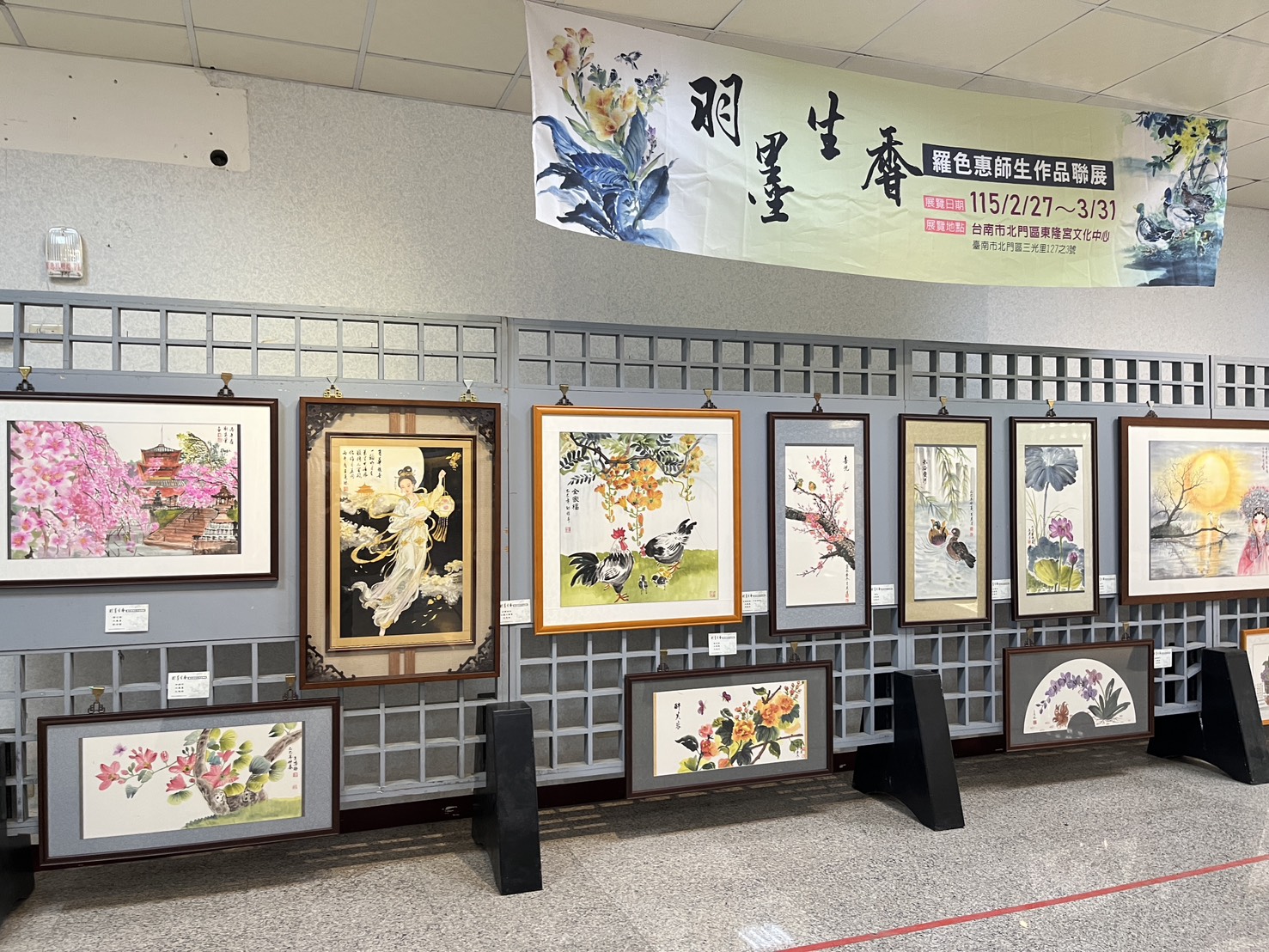 【記者邱仁武/台南報導】台南市北門區三寮灣東隆宮創建360週年「神恩360香火永傳:宗教文化盛典」系列活動,「羽墨生香—羅色惠師生作品聯展」,27日起至3月底邀請水墨藝術家羅色惠老師攜手師生共同展出,呈現水墨藝術在當代創作中的多元風貌與傳承精神。