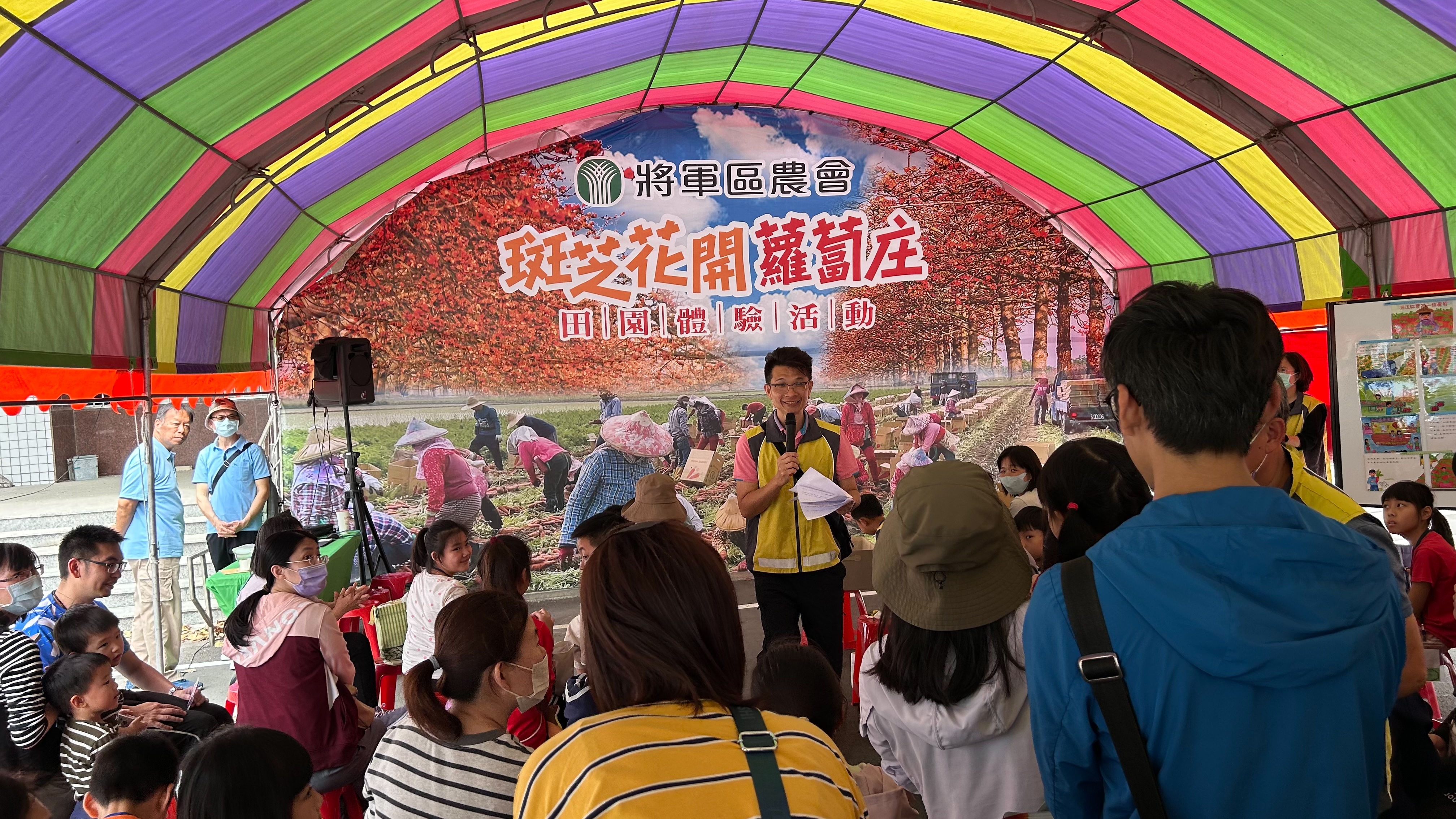 市議員方一峰及將軍區長張介軍都到場參與,推廣部主任黃世昌說,2天的活動內容豐富,包括田園體驗拔蘿蔔、親子闖關遊戲(闖關成功可參加摸彩,有機會獲得文創小物「將將兔」鑰匙圈),以及趣味十足的「胡蘿蔔回娘家」活動—凡姓名中含有「胡」、「蘿」、「蔔」任一字者,即可免費體驗拔蘿蔔(每日限量20名),為現場增添驚喜與笑聲。