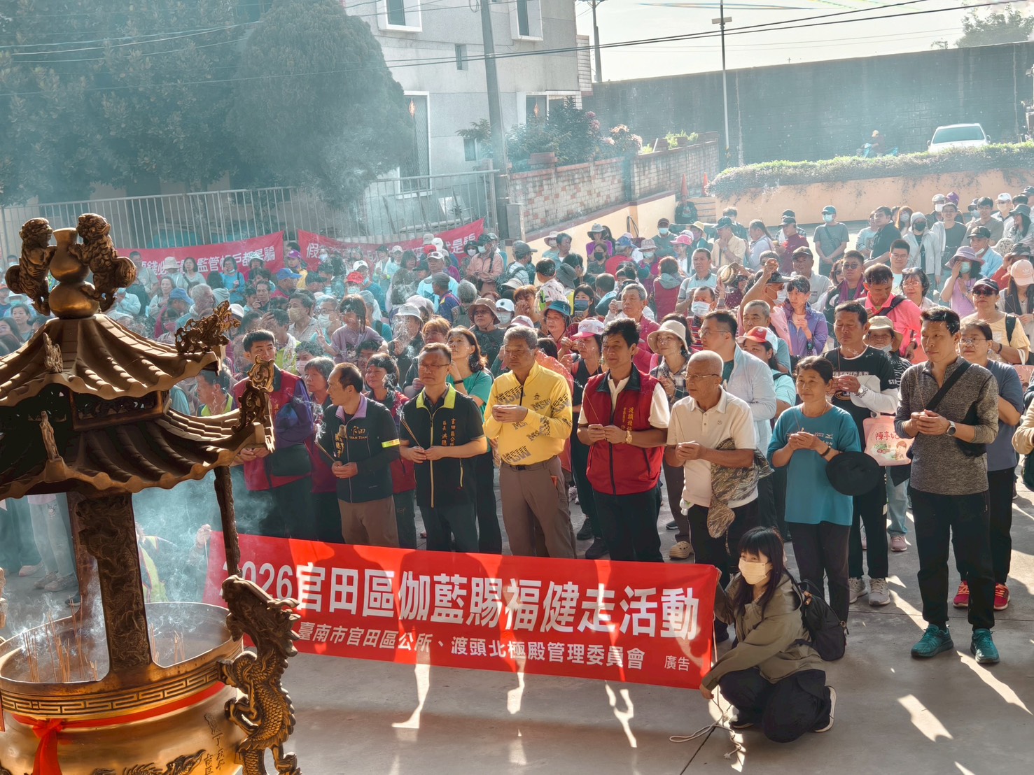 【記者邱仁武/台南報導】台南市官田區公所為推廣全民運動並傳承地方宗教文化,27日在官田區體育公園舉辦2026官田區「伽藍賜福健走活動」,區長洪聰發表示,活動吸引千名民眾踴躍參與,現場氣氛熱絡、人潮絡繹不絕,充分展現官田區社區凝聚力與健康活力。