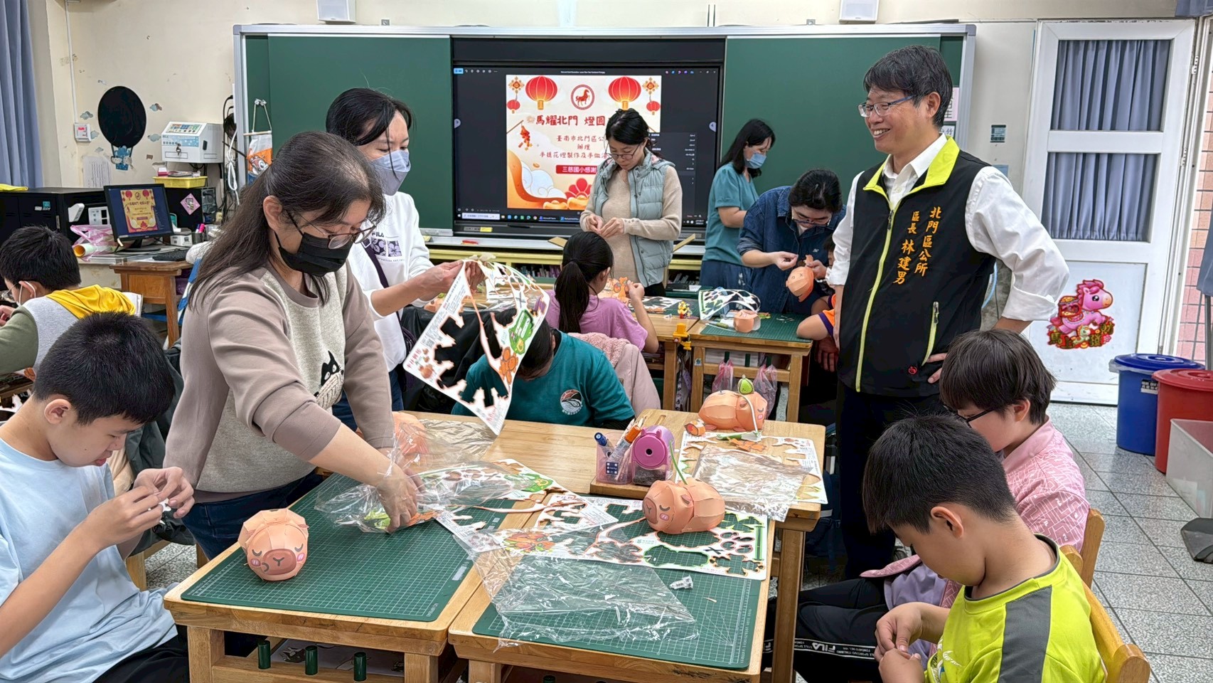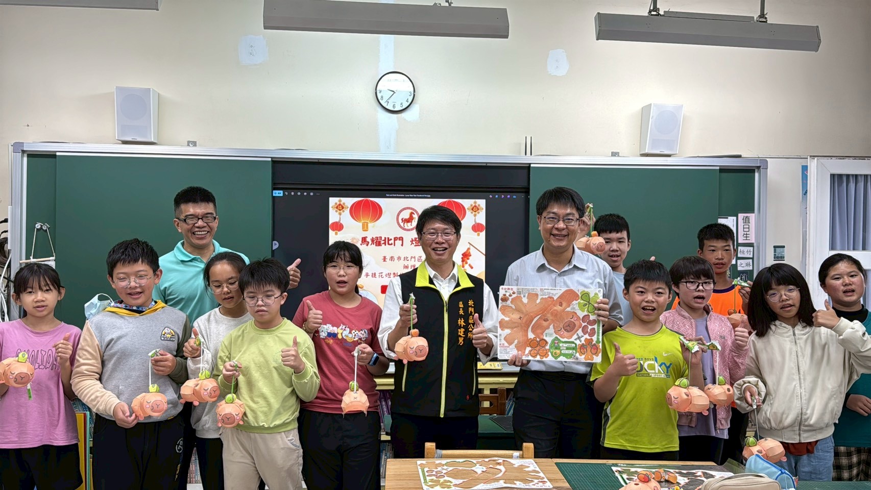 北門區長林建男表示,今年最吸睛的亮點,是超人氣小提燈「卡比胖拉」。孩子們在指導下親手組裝燈體、固定提把、裝上燈光,完成屬於自己的可愛小提燈。當第一盞「卡比胖拉」小提燈亮起時,現場響起歡呼聲,溫暖的燈光映照著孩子們興奮的笑臉,也為校園增添濃濃的節慶氣氛。