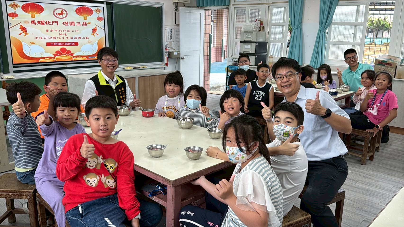 當小提燈點亮、湯圓入口的那一刻,團圓與祝福在三慈校園裡悄悄發光。北門區長林建男也為孩子們送上祝福,期勉大家在新的一年平安健康、學業進步、勇敢逐夢,如駿馬奔騰般昂首向前;也期待公所與學校持續攜手,讓北門的孩子在關懷與陪伴中成長茁壯。