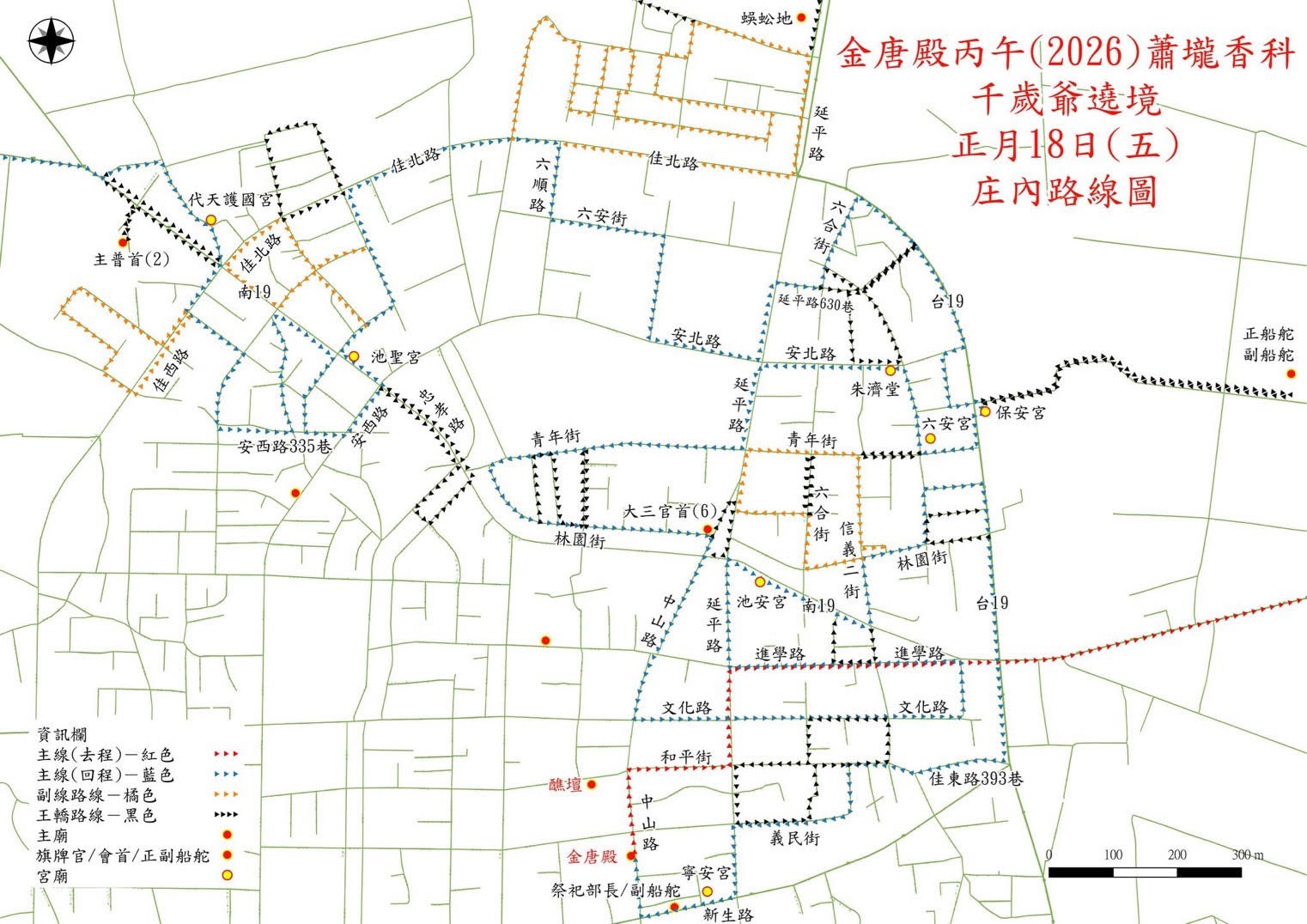 為維護活動安全及道路交通順暢,佳里分局長謝承甫建議用路人避開遶境路線,盡量改行替代道路,避免阻塞: