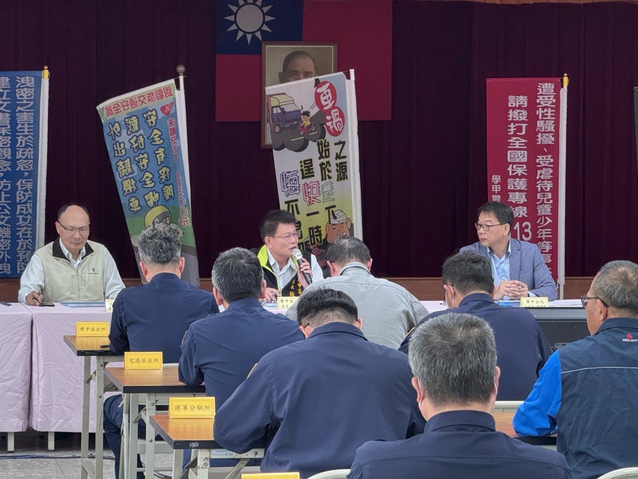 包括學甲區長張明寶、將軍區長張介軍是親自出席座談會,會議由分局長林明俊主持,強調對於校園及學生安全維護,是上任後極其重視的一環,除了平時於轄內各級學校周邊熱點巡簽、定期辦理校園安全環境檢測外,更透過建立緊急聯繫窗口及LINE群組,在遇有校安問題發生或發現可疑徵候時,均能第一時間立即處置,聯手打造安全學習環境;會議中,亦針對青少年較常見之犯罪類型,如擔任詐欺面交、提款車手、吸食新興毒品、拍攝、持有及散佈性影像等犯罪議題宣導,協請各校師長能多加注意、關心學童就學情況,防患未然。