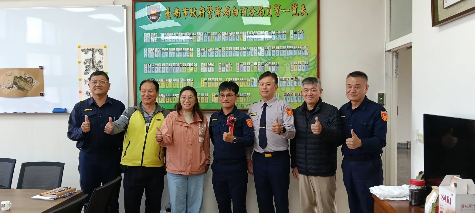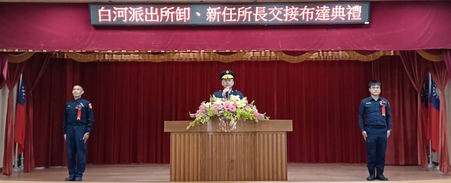 分局長陳志埕表示,白河地區人情味濃厚,警察與地方關係密切,劉所長過去在偵辦刑案及業務工作上均表現亮眼,積極敬業,允文允武,期許劉所長接任後,秉持「專業、效率、關懷」的精神,以同理心傾聽民意、主動走入社區服務鄉親,貼近民眾需求,成為白河鄉親最堅實的依靠,讓安全成為白河最溫暖的日常。