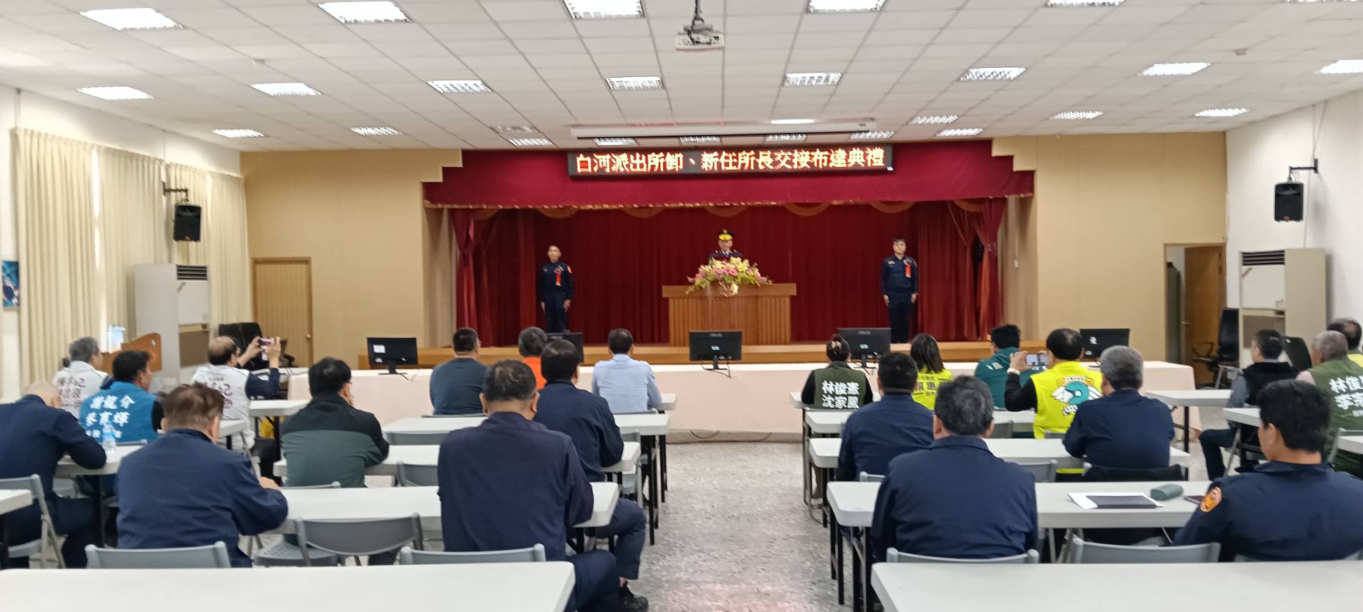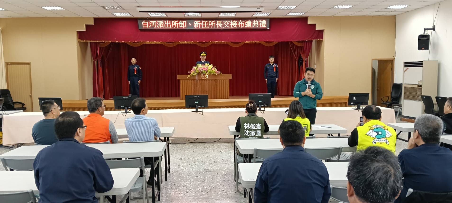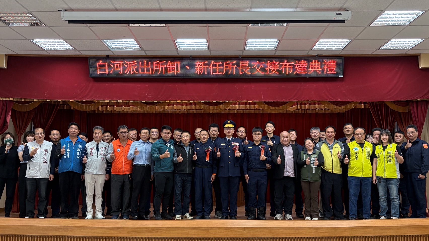 【記者邱仁武/台南報導】臺南市政府警察局白河分局白河派出所今(11)日上午舉行新任所長劉韋宏布達交接典禮,由分局長陳志埕主持監交,市議員李宗翰、沈家鳳、立委陳亭妃秘書、立委賴惠員秘書、議員蔡育輝秘書、議員王宣貿特助、議員趙昆原秘書及地方民代、仕紳均到場觀禮,典禮過程莊重溫馨。