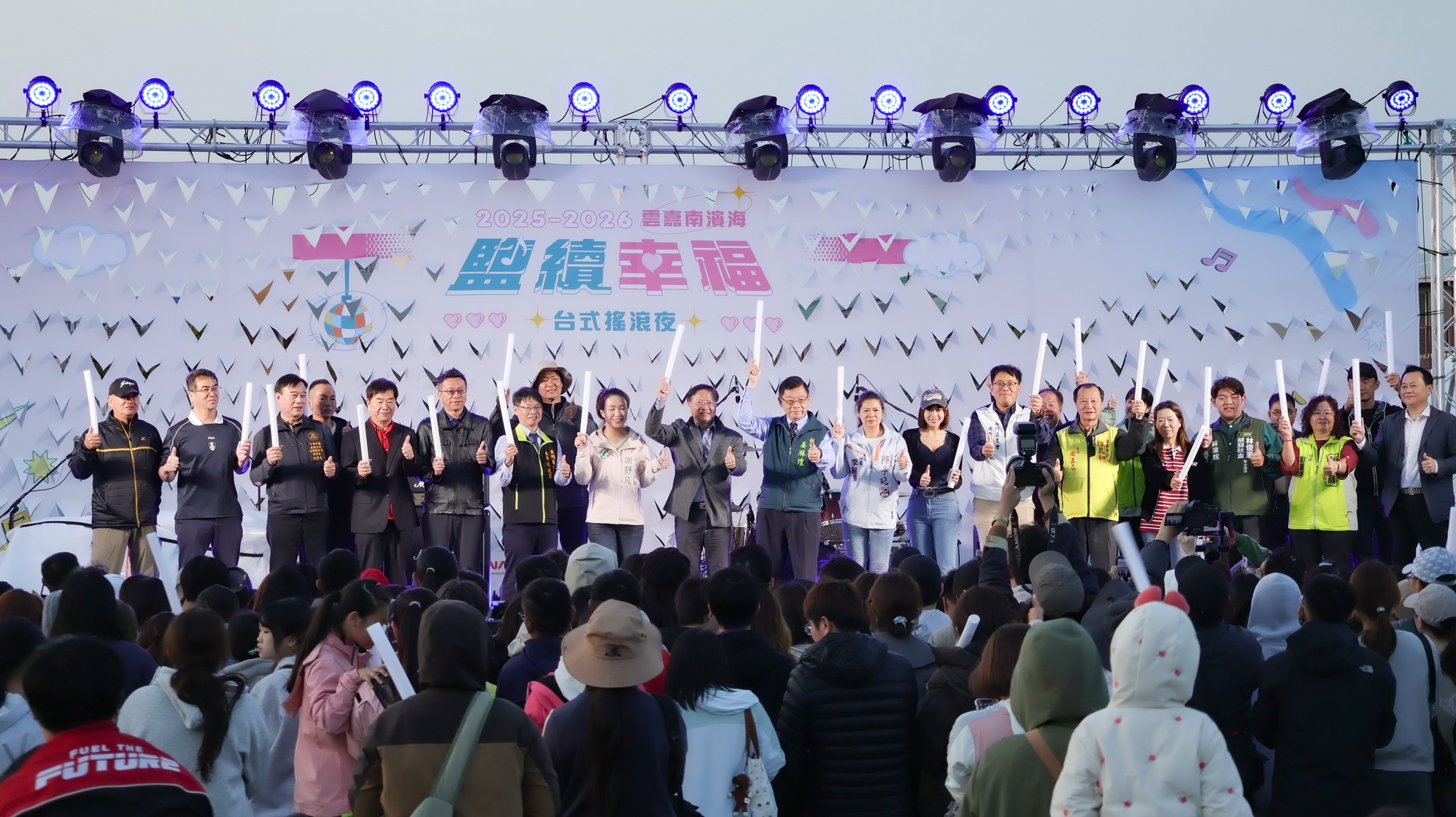 【記者邱仁武/台南報導】交通部觀光署雲嘉南濱海國家風景區管理處昨天晚上在台南北門遊客中心舉辦「2025-2026 雲嘉南濱海—鹽續幸福、台式搖滾夜」音樂會,作為系列活動的壓軸活動,重磅邀請多組知名歌手演唱,現場人數湧入近5千人次,雲管處長徐振能宣布活動圓滿落幕。