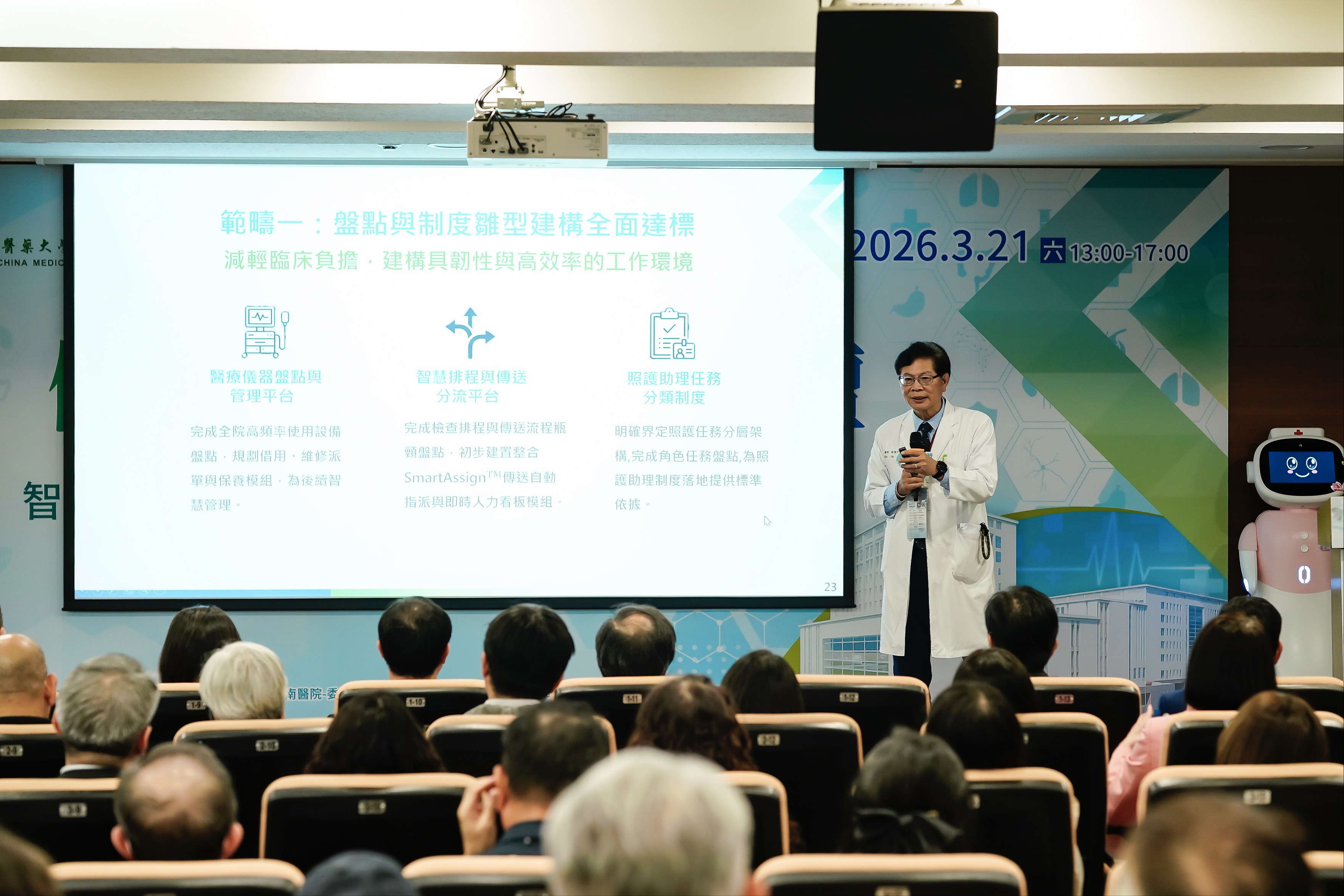 安南醫院院長林聖哲表示,機器人「愛寶」能分擔醫護人員約 30% 至 50% 的非專業性庶務,功能涵蓋住院環境導覽、衛教諮詢、物品遞送及遠端查房等。此外,安南醫院已將自動化技術深度整合至藥劑、檢驗及臨床照護流程中,例如透過自動調劑系統與自動化傳送物流,不僅有效縮短病人候藥時間,更讓醫護人員從繁瑣的行政庶務中解放,回歸專業照護核心。