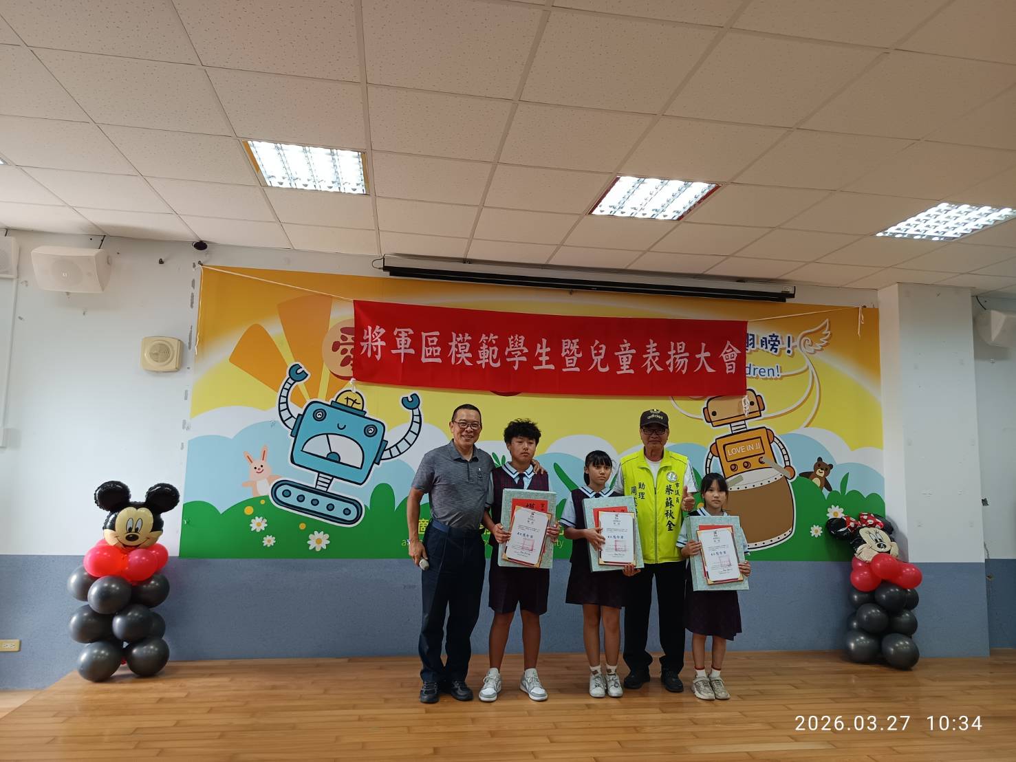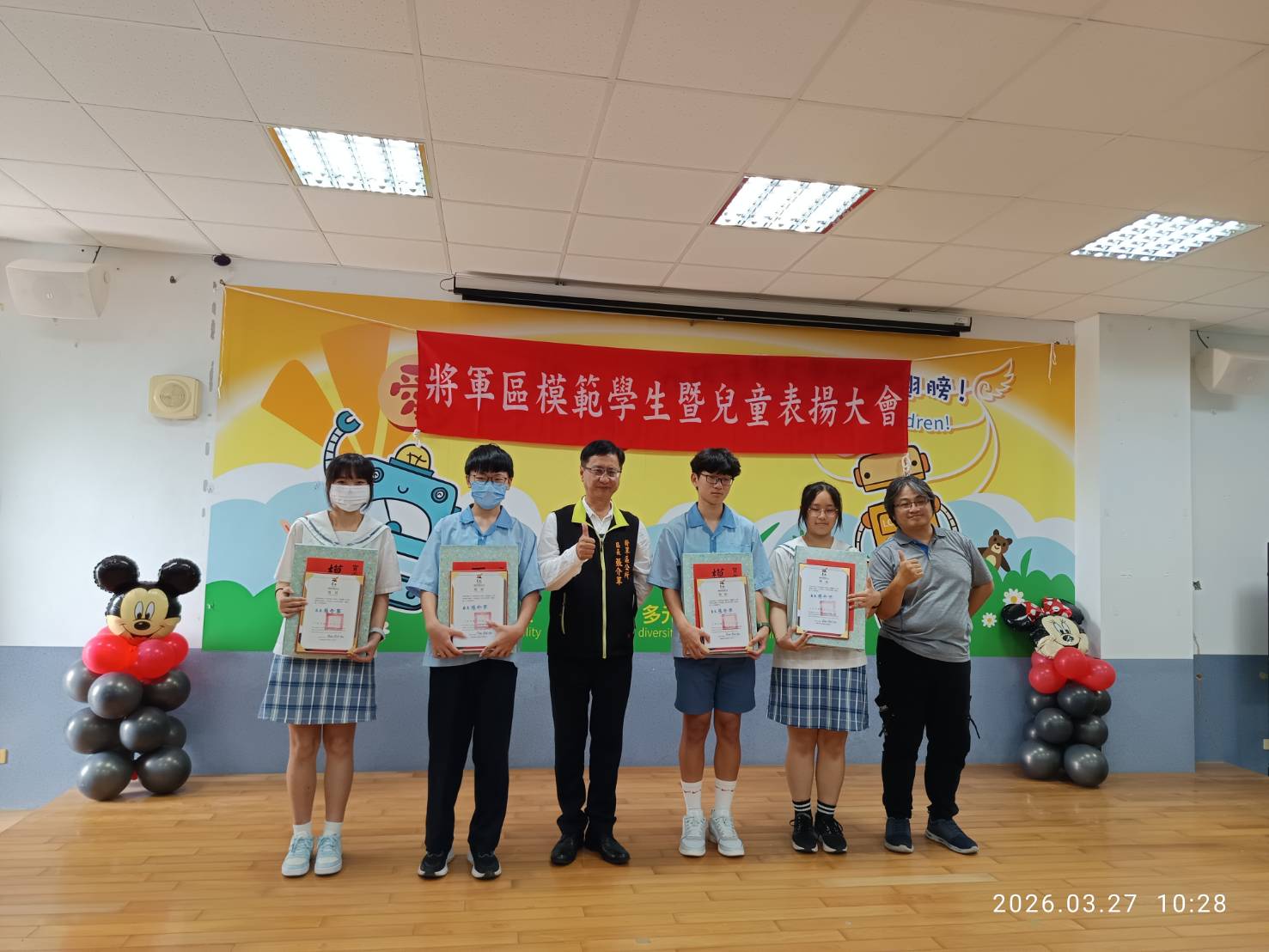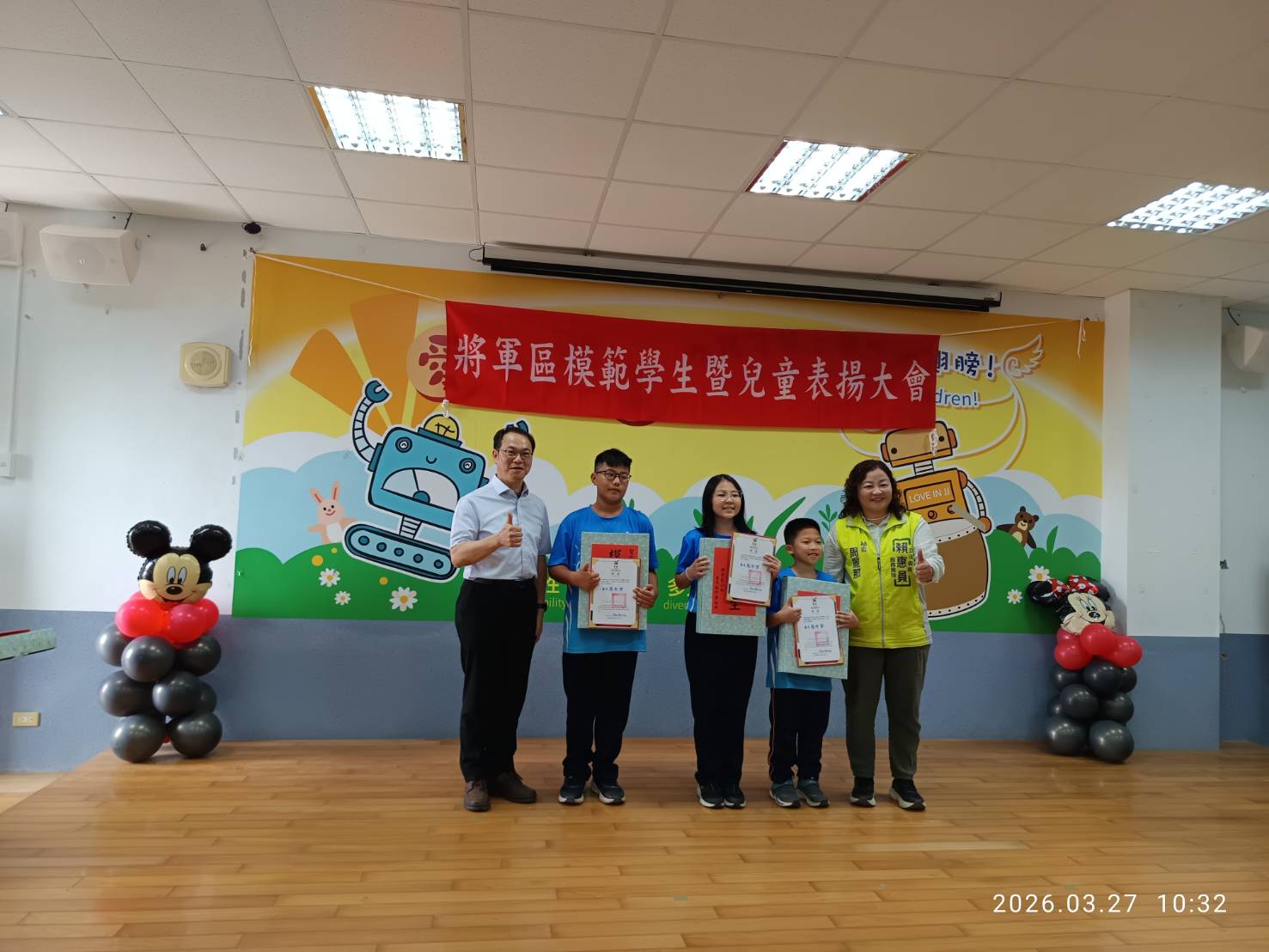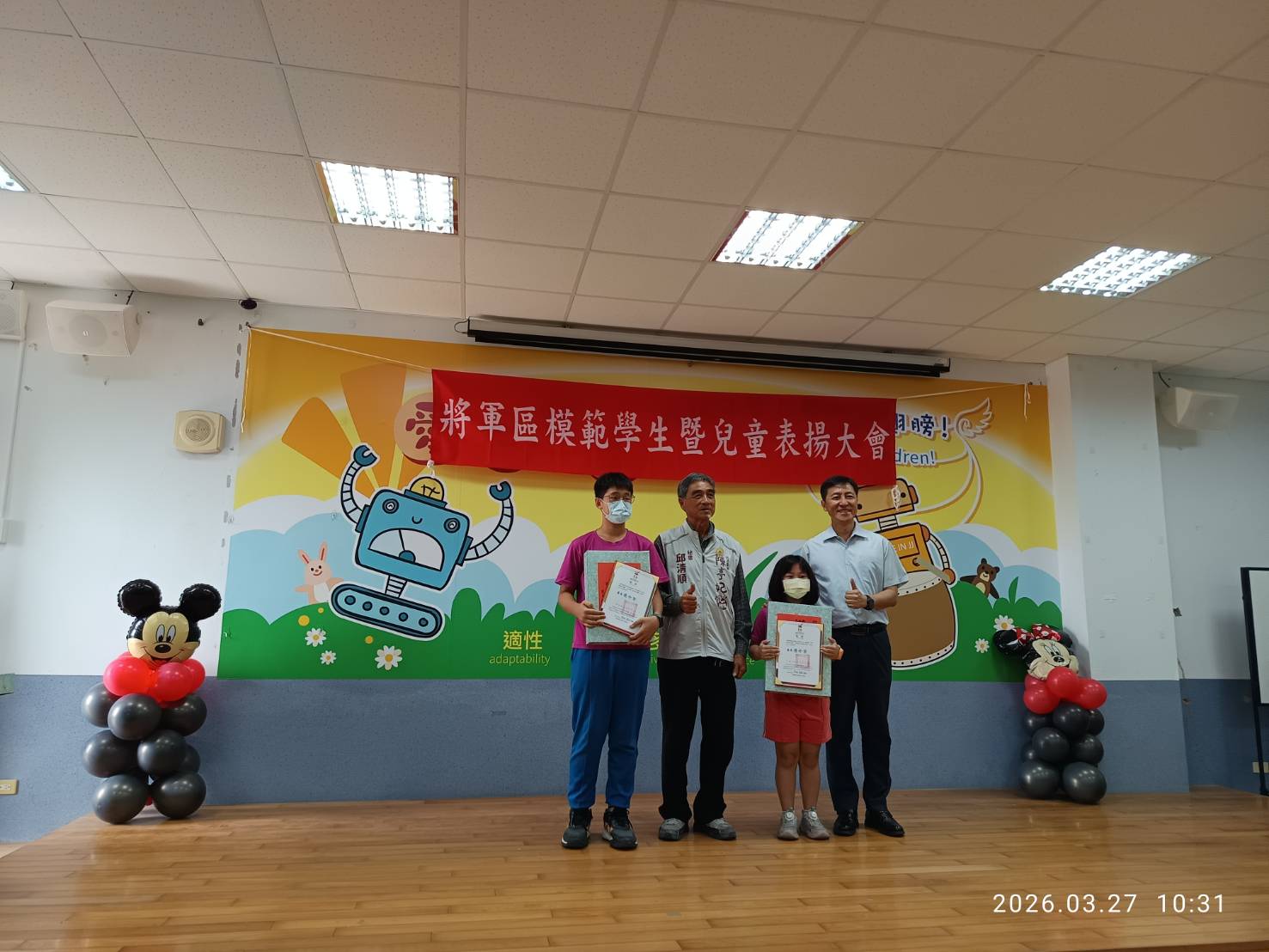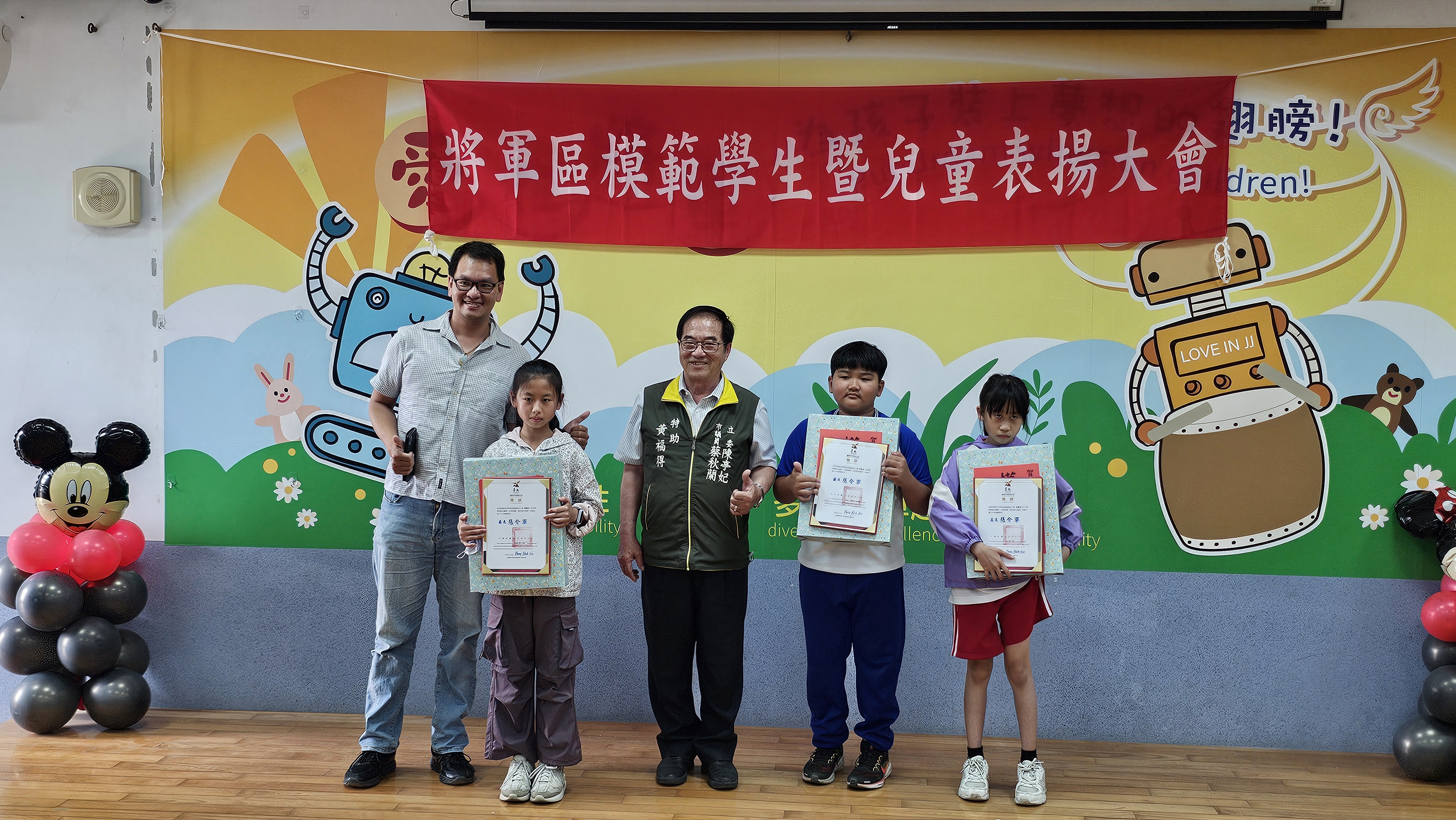 表揚大會包括市議員謝舒凡、方一峰、立委陳亭妃秘書邱清順、賴惠員秘書周麗那、市議員陳昆和主任周正乙、蔡蘇秋金助理周憲塘、蔡秋蘭特助黃福得,以及將軍國中校長謝元入、漚汪國小校長蔡孟倫、苓和國小代理校長陳志雄、將軍國小校長周志強、長平國小學務組長劉晉端、鯤鯓國小教導主任劉耿江,共同見證學生榮耀的時刻。