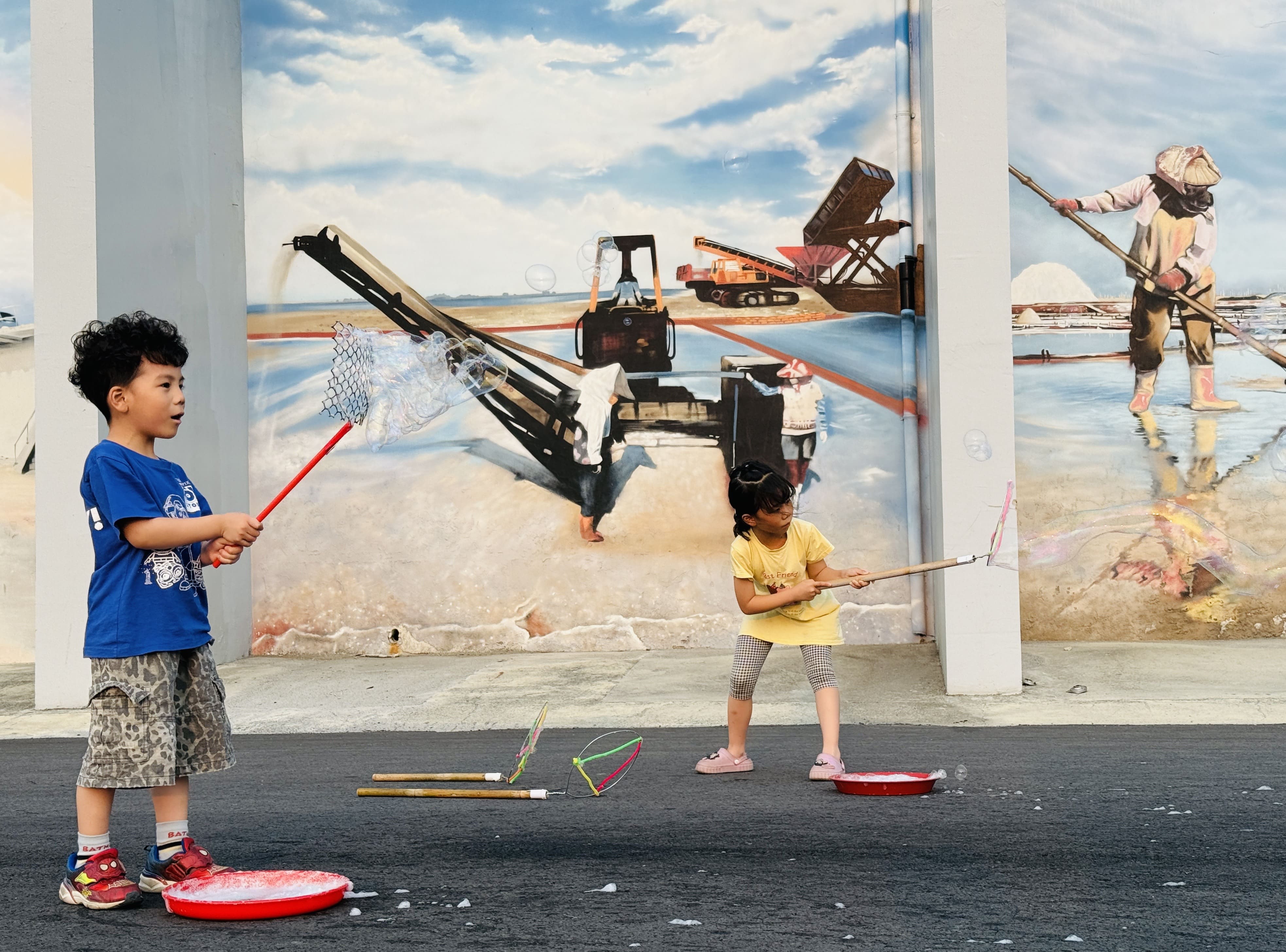 佔地廣闊的七股鹽山,是親子戶外放電的最佳場域,活動特別企劃「大地彩繪塗鴉」,遊客只需完成社群平台打卡追蹤,即可免費領取彩色粉筆。孩子們能以大地為畫布,盡情揮灑創意,堆疊出春天的繽紛色彩。此外,園區祭出超值同樂回饋,凡於門市單筆消費滿199元,即可獲贈「泡泡體驗券」一張,讓孩子在藍天與鹽山的襯托下追逐飛舞泡泡,享受戶外樂趣。