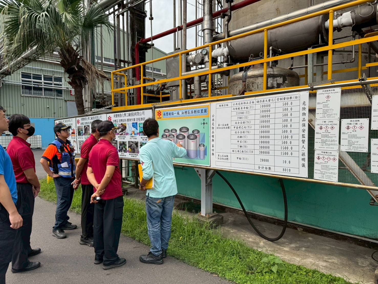 第3大隊長鄭誌峰表示,化工廠區內常存放多種類型的化學原物料,且各自具備不同的特性,搶救時的戰術考量遠比一般建築火警複雜。因此,這次踏勘的首要任務,就是扎實的「環境掌握」及第1時間「危害風險」的評斷;包括化學品處理區場所、儲存場所等,並實地了解廠區內外的搶救動線、消防設備配置及水源位置等救災資源。同時,也現場指導業者在災害發生初期的正確緊急應變作為,雙方更藉此機會充分交流實務經驗,建立良好的救災默契。