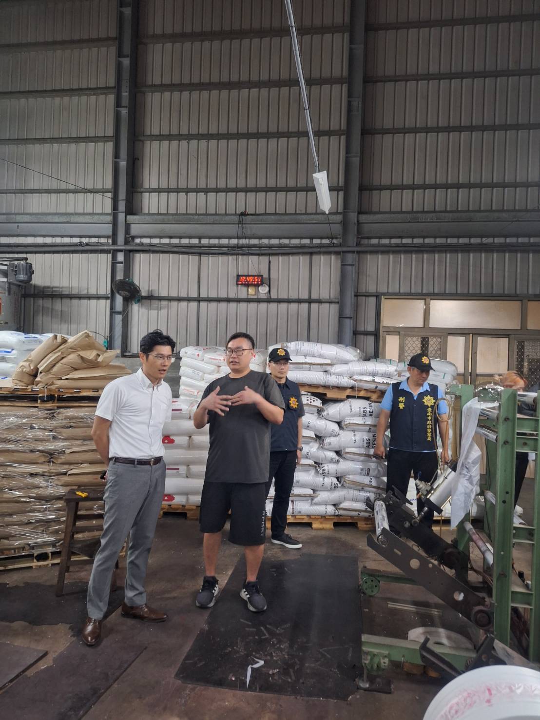 臺南地檢署檢察長鍾和憲於連假甫結束,再行指示民生犯罪專組主任檢察官錢鴻明於今(7)日率同臺南市政府警察局刑事警察大隊偵一隊及臺南市政府經濟發展局,依據先前查訪零售業者所獲資訊,前往臺南市新營工業區內2家塑膠袋製造業者進行查訪。現場業者生產線均正常運作中,產製成品則包裝完成待貨車及物流業者進行出貨,倉庫內尚無大量囤積貨物之情形。