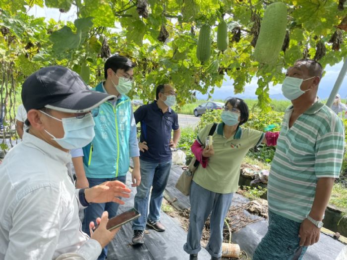 立委賴惠員獲悉,儘速與市長黃偉哲連聯繫確認,在今(4)日與市議員劉米山、行政院農業委員會農糧署、台南區農業改良場、台南市政府農業局共同前往東山區會勘,確認絲瓜受損實際情形。