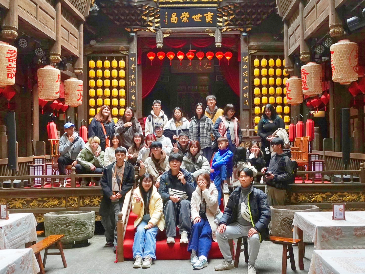 ▲台灣客家子弟到龍岩進行短影音創作,走訪多個客家特色景點。圖為參賽隊伍於八喜樓合影。圖/主辦方提供