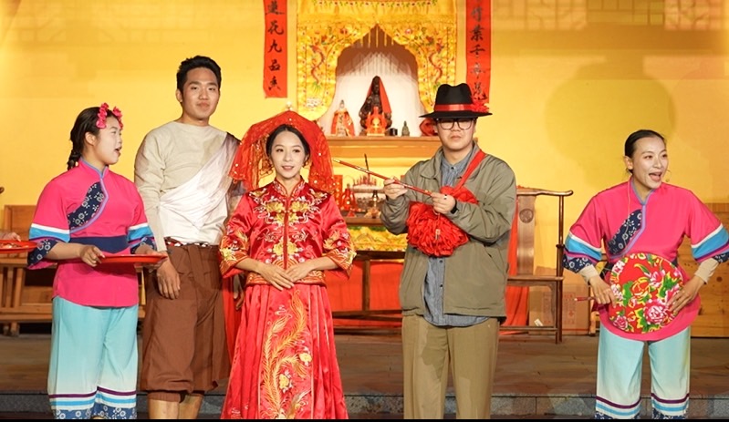 ▲台灣大學生黃同學(右二)於永定土樓體驗客家傳統婚禮。圖/主辦方提供
